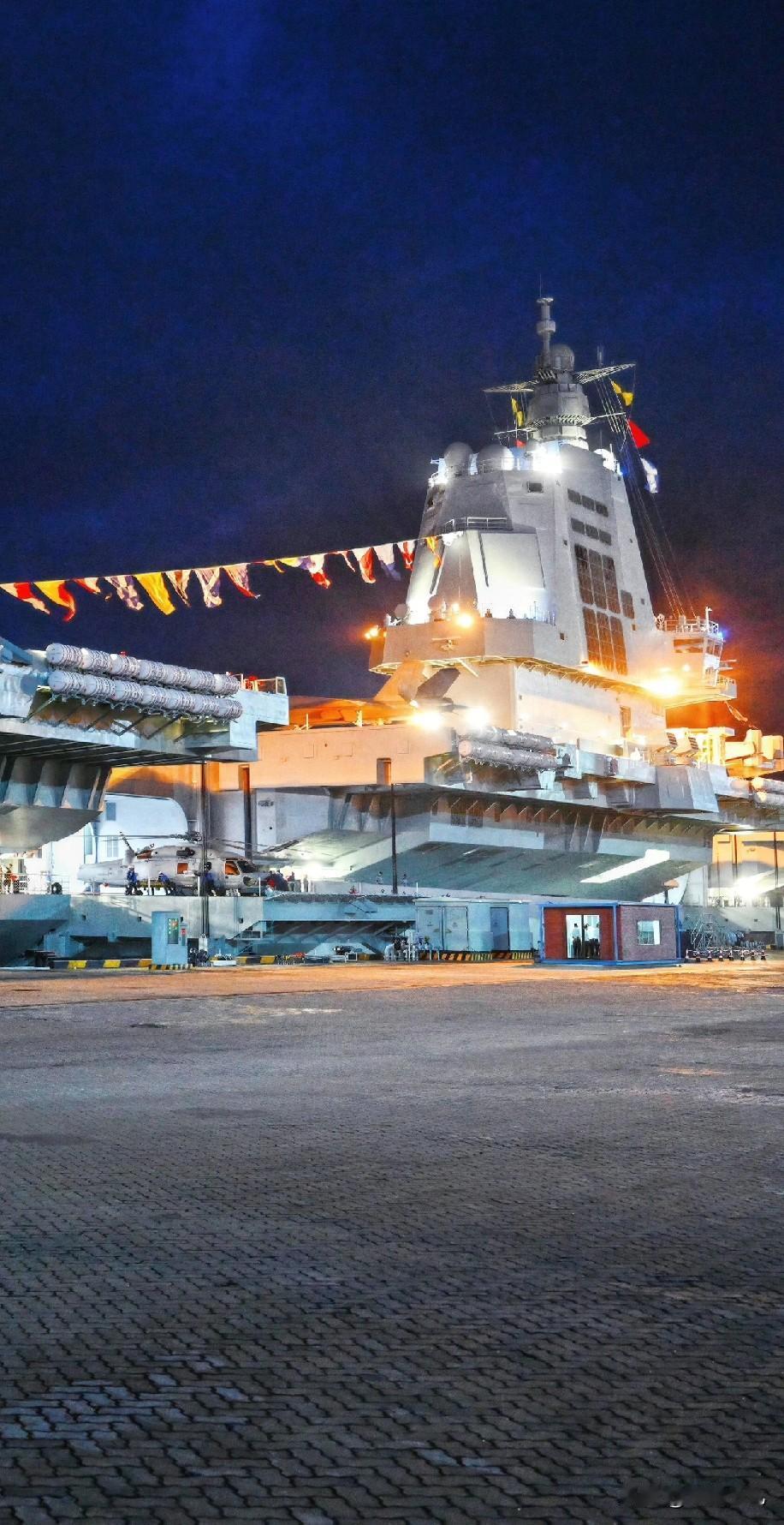 福建舰这个视角,真的绝了,压迫感太强了! 福建舰,这张夜景照片,真的是压迫感十