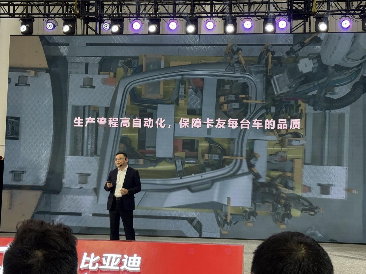 万万没想到,我竟然被这场新车发布会上的一段演讲感动了! 昨天(11月13日),比亚迪轿卡T4上市,比亚迪商用车事业部总经理田春龙说了一段让我很受触动的话! 他说:轿卡T4研发旨在满足紧扣卡友“出门少辛苦、开上更有面、家人少担心”的需求,让城配司机开高品质轿卡、体面赚钱成为现实。比亚迪轿卡T4以全球领先三电技术为核心,打破“小卡只是运输工具”的刻板印象,成为一款真正兼具卡车经济实用与轿车安全舒适的全新轿卡。 我为什么感动呢? 因为从田总这段话中,我感受到了比亚迪产品开发的初心,感受到了对万千卡友的技术关怀! 大家知道,卡车司机经常起早贪黑,非常辛苦!而传统的卡车对车辆承载能力很重视,却对司机的驾驶感受关心不够!经年累月的颠簸,很多卡友腰酸腿疼、脊椎劳损! 比亚迪正是看到了这一点,新上市的轿卡T4,不仅以安全与舒适为基石,更将“轿乘化体验”作为核心设计追求,彻底弥补了传统小卡“驾乘感受不佳”的短板。