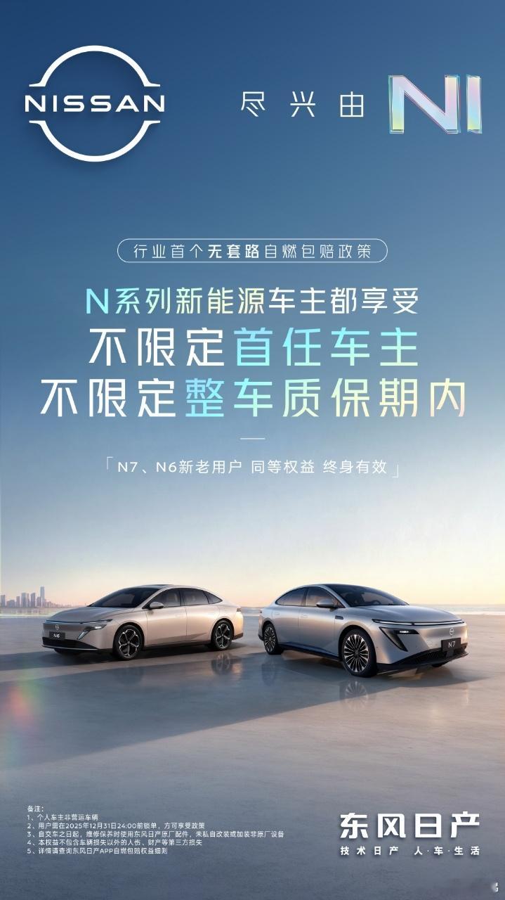 东风日产N6这次的自燃包赔政策细节很有意思,没有什么套路,甚至不限定首任车主。其实更主流新能源用户的顾虑很质朴,就是怕烧车。N系列新能源车型新老车主同享,终身有效电池因三电系统质量问题发生自燃,均提供补偿同等配置的新车,无需折旧✅ 不限定首任车主✅ 不限定整车质保期内✅ 不限定是否达到