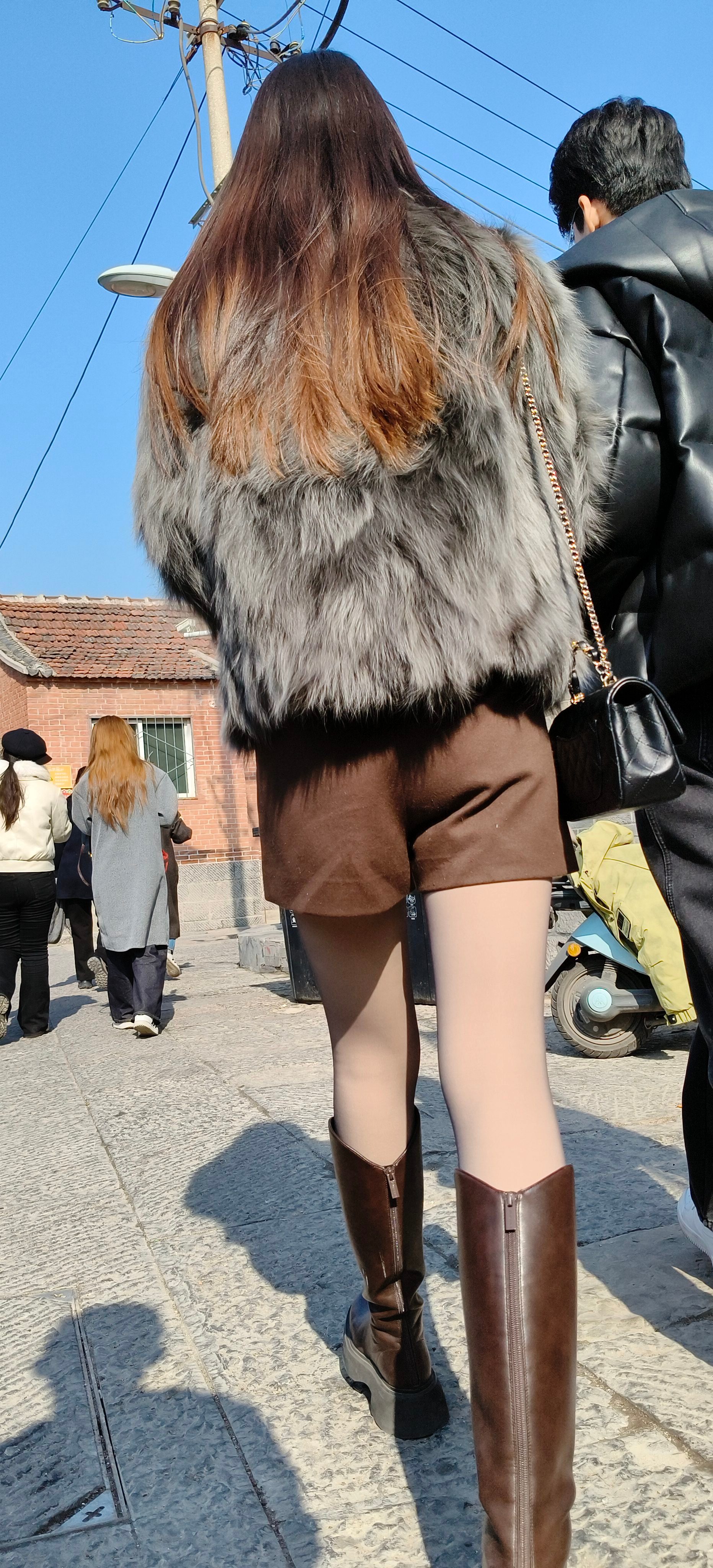 灰貂皮草裹满贵气,棕靴短打衬出利落,冷天也能美得不臃肿。