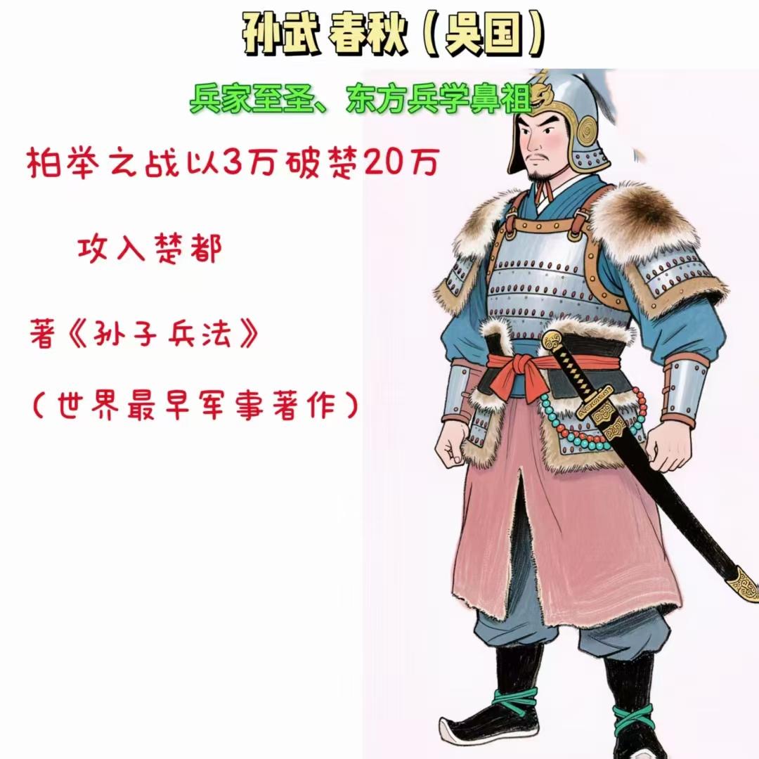 武庙十哲有哪10个? 孙武 《孙子兵法》 完整传世,兵学圣典 吴起 《吴子兵法》 基本传世,重要兵书 司马穰苴 《司马法》 部分传世,重军礼法制 诸葛亮 《将苑》、《便宜十六策》等 部分传世,或有托名 张良 无独立著作 思想见于《史记》 韩信 著有兵书,已失传 思想与战例见于《史记》 白起 无著作传世 战绩与思想见于《史记》 乐毅 无著作传世 事迹与书信见于《史记》 李靖 原著多佚,有辑佚本 思想见于《通典》及《唐李问对》 李勣 合著兵书已失传 事迹见于《新唐书》、《旧唐书》