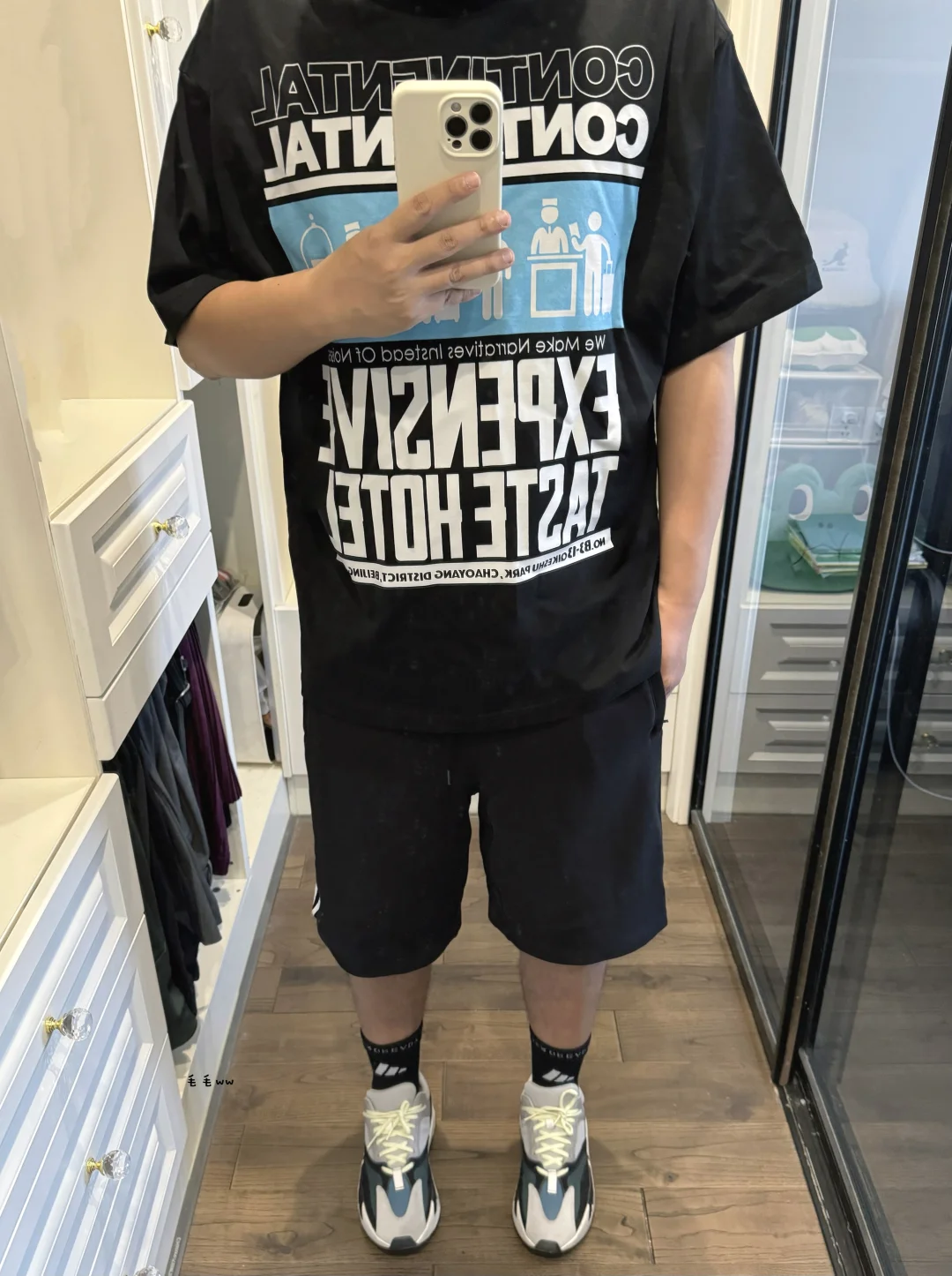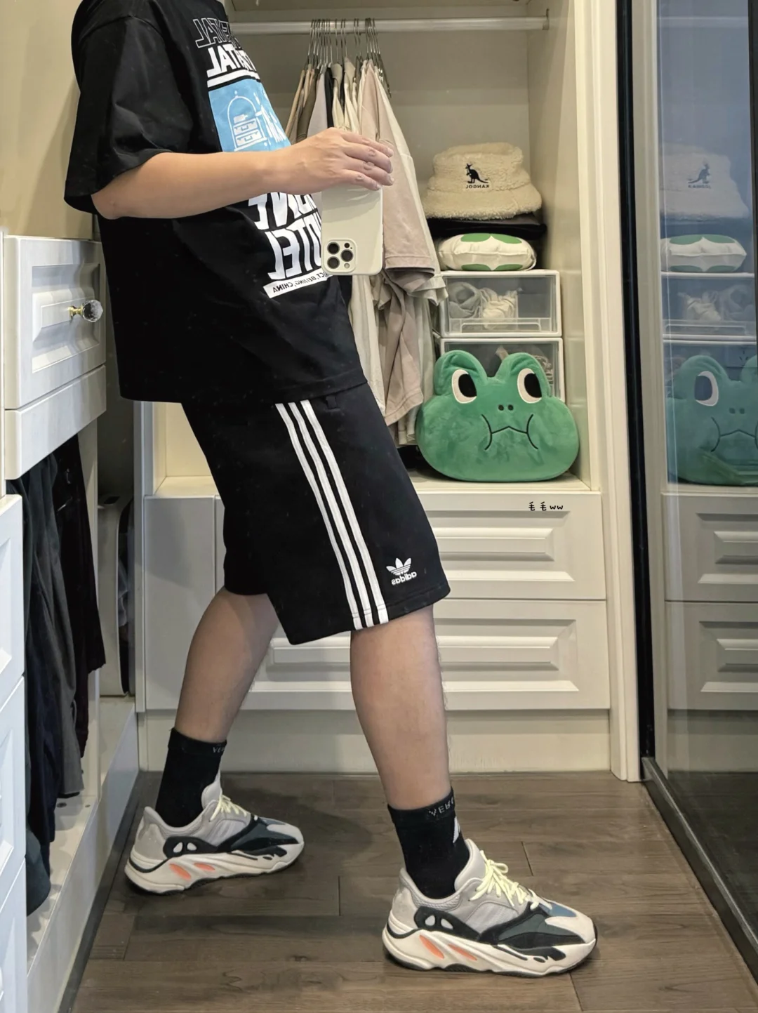 -整个yzy球鞋支线,700是除了350之外,我日常穿着最频繁的;脚感适中,加厚外底也更耐磨,首发配色wave runner杂而不乱,搭配属性拉满 . —————— . 👕Expensive Taste // M . 🩳Adidas Originals / IU2337 // L . 👟YEEZY Boost 700 / wave runner // 42.5 . —————— . ✏️本人178cm75kg 球鞋尺码265mm(正常EU42) . 💭以上均为我个人观点,不喜勿喷,欢迎讨论