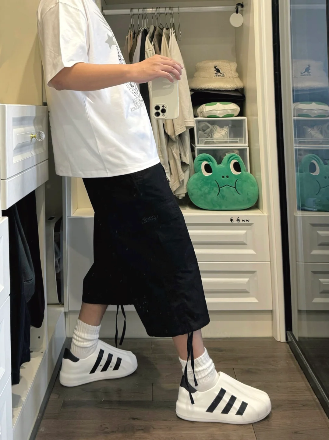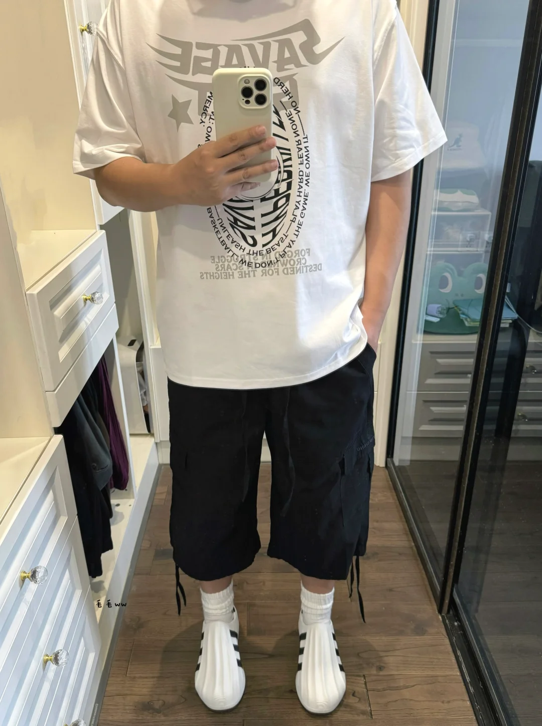 -小伙伴们喜欢穿七分裤么,仿佛又流行回来了;户外工装属性,裤脚飘带细节,洞洞鞋驾驭得刚刚好 . —————— . 👕Hyperkiller // L . 🩳Coke / 可口可乐 // XL . 👟Adidas adiFOM / Superstar // 43 . —————— . ✏️本人178cm75kg 球鞋尺码265mm(正常EU42) . 💭以上均为我个人观点,不喜勿喷,欢迎讨论