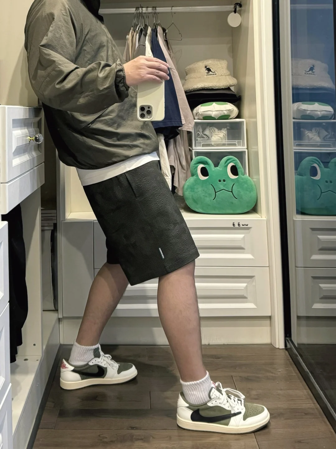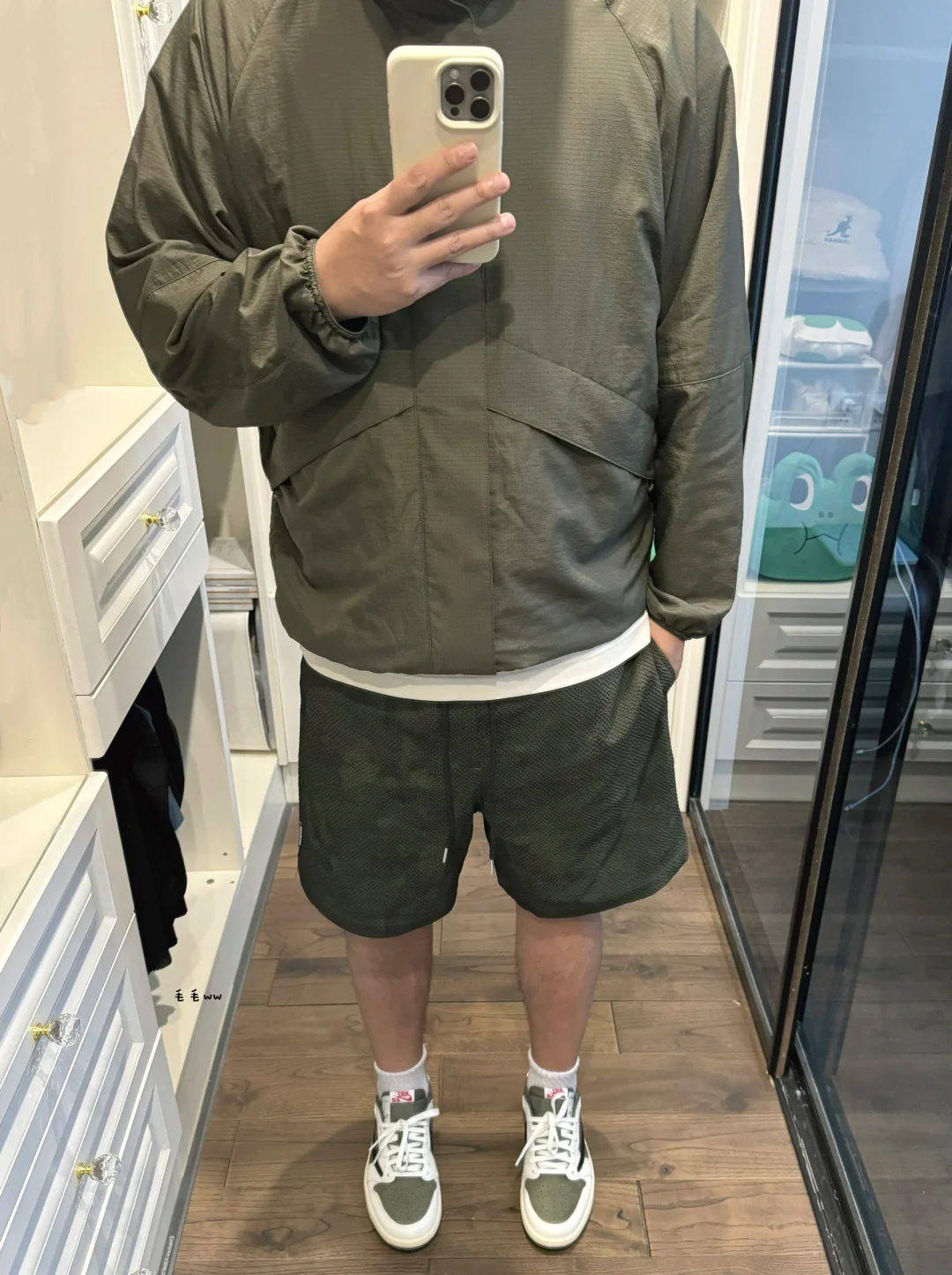 -C系列轻型夹克,实物防晒服非常轻薄,没有官方展示图那么带感,配有系列同材质短裤 . -墨绿或者橄榄,色系增加质感,属于纯为配色埋单,春夏秋交替的时候穿着正好 . —————— . 👔Uniqlo :C / 476196 // L . 🩳Expensive Taste // M . 👟Air Jordan 1 / Travis Scott // 42 . —————— . ✏️本人178cm75kg 球鞋尺码265mm(正常EU42) . 💭以上均为我个人观点,不喜勿喷,欢迎讨论