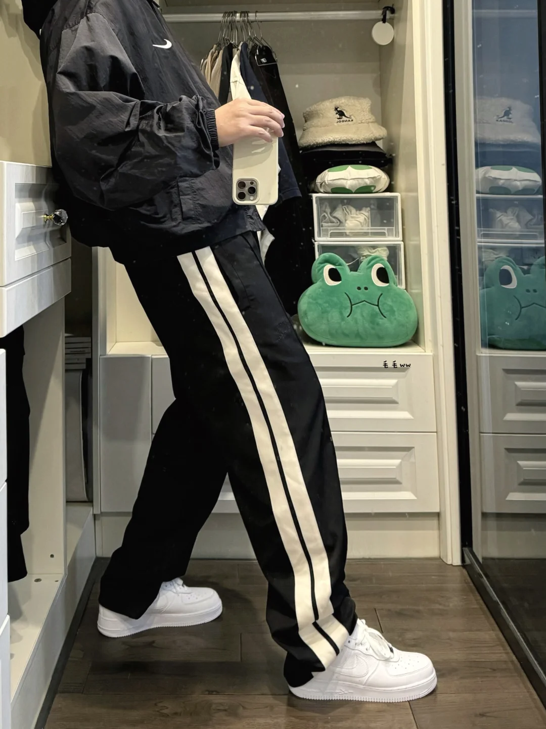 条纹卫裤|白色系穿搭