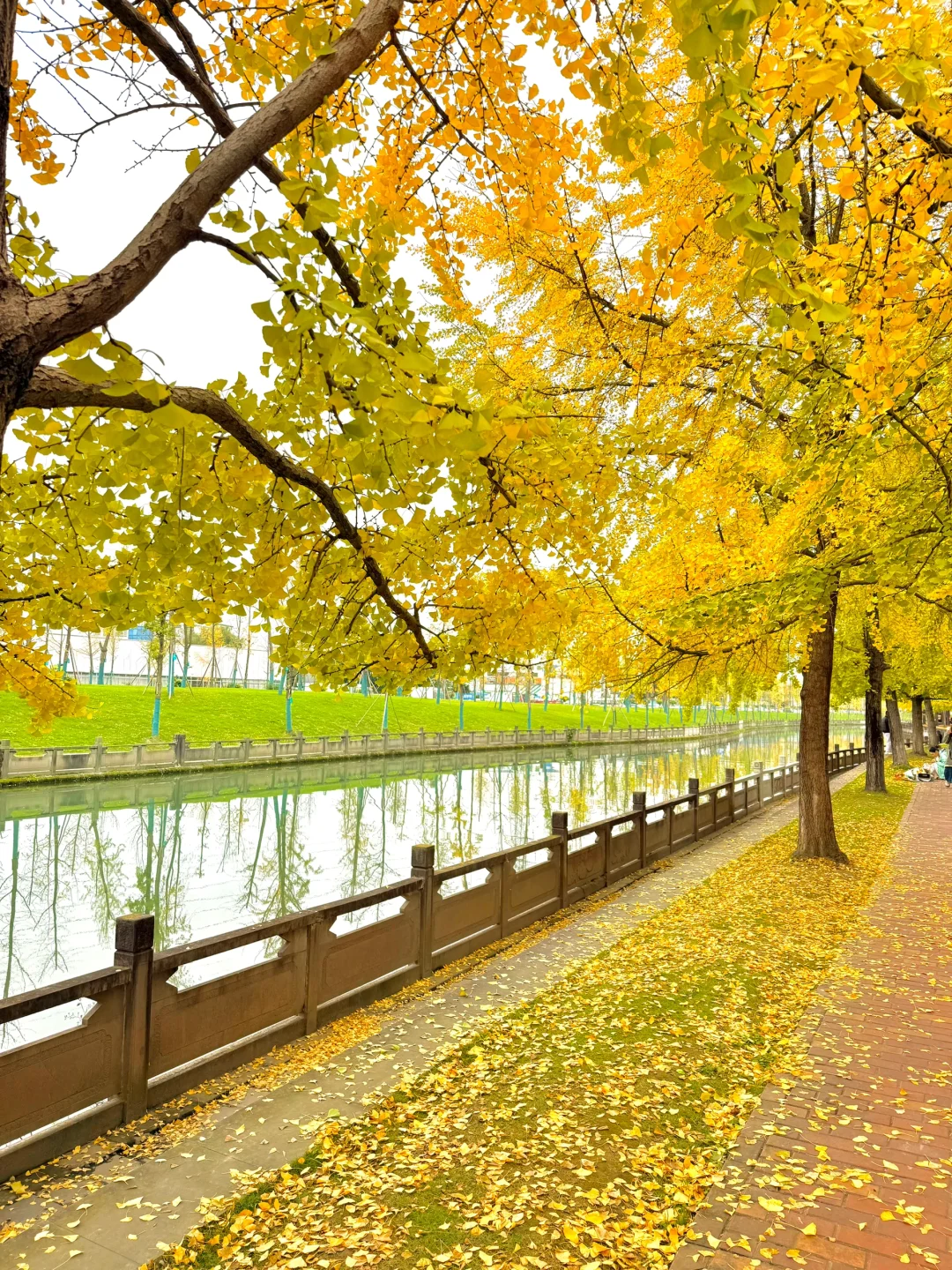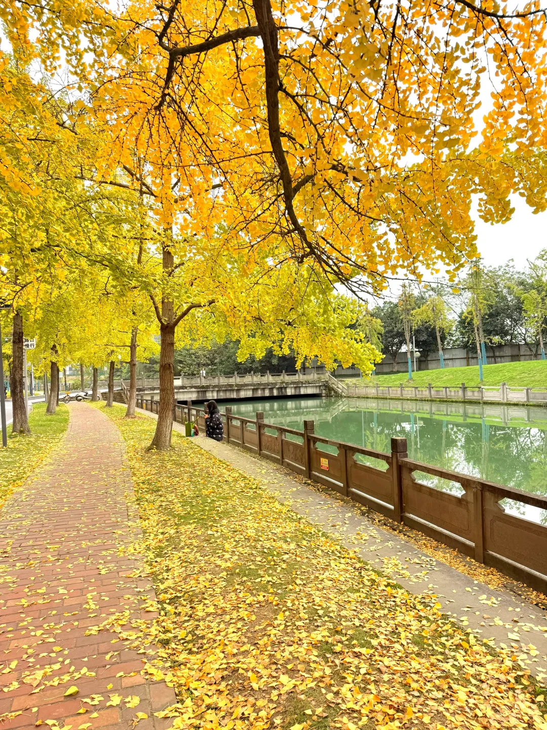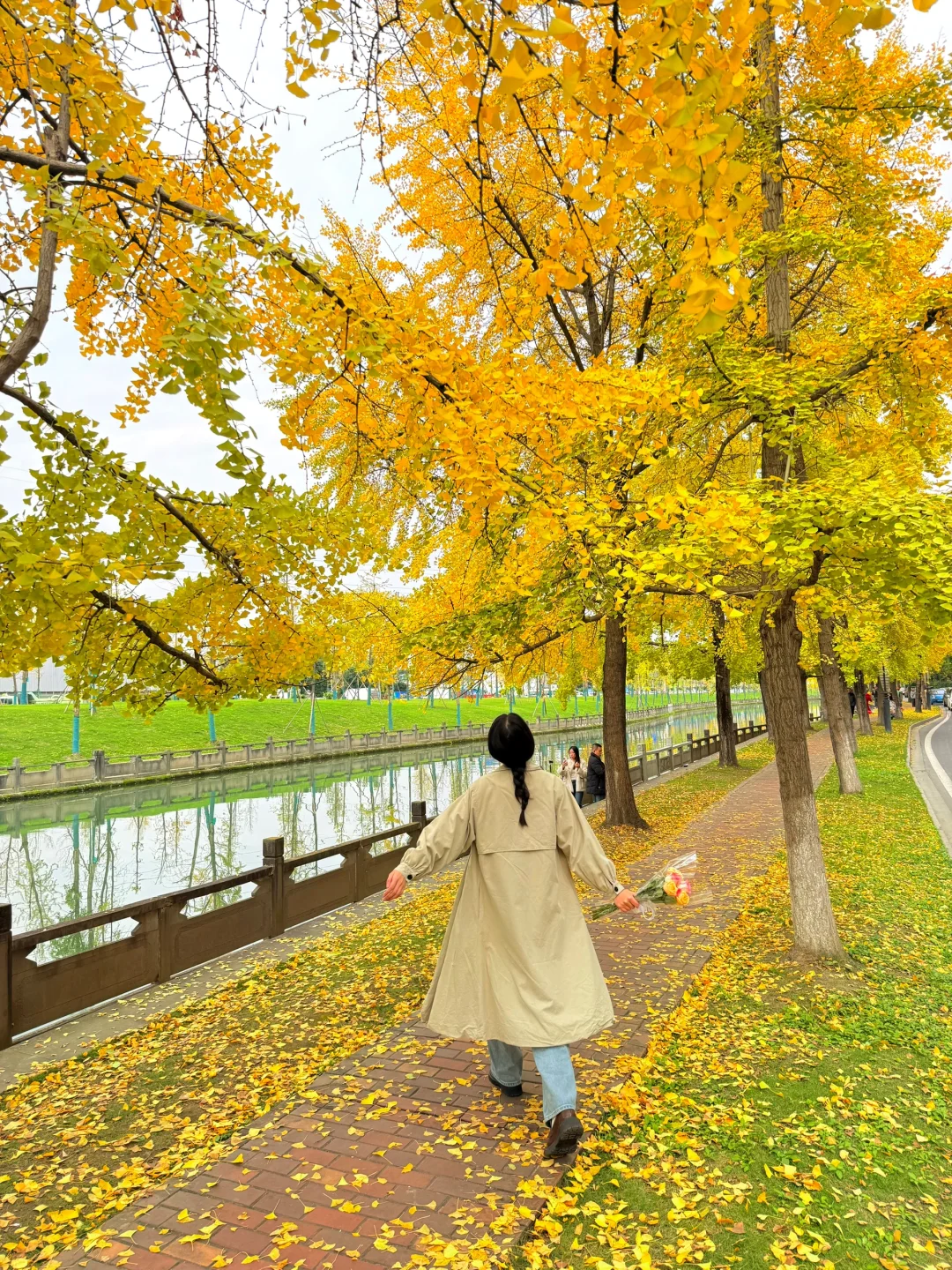 朋友们!!成都的银杏已经黄啦 这条河边银杏道,都已经开始落叶了 地面铺了黄黄的一层 好像知道这里的人很少!! 来的时候都没啥人⋯ 📍双流蛟龙港活水公园 🅿️可以停路边 不要钱 🚇地铁3号线龙桥路F口出 再骑个自行车或者打车过去 · 📸拍照小tips ✔️建议穿有秋日氛围感的衣服 最好是裙子、风衣 ✔️准备一些小道具 帽子 伞报纸啥的 拍照画面更丰富 ✔️如果要拍人像的话 可以带一个反光板!! ✔️出完片,再和姐妹席地而坐,晒着暖乎乎的太阳,开几罐雪花马尔斯绿小酌微醺 实在是惬意