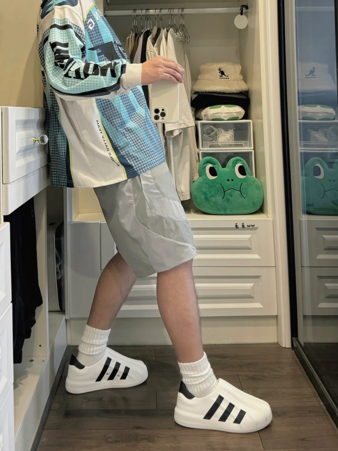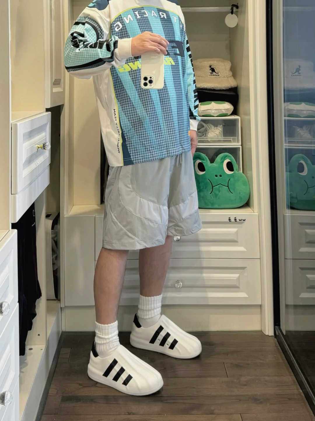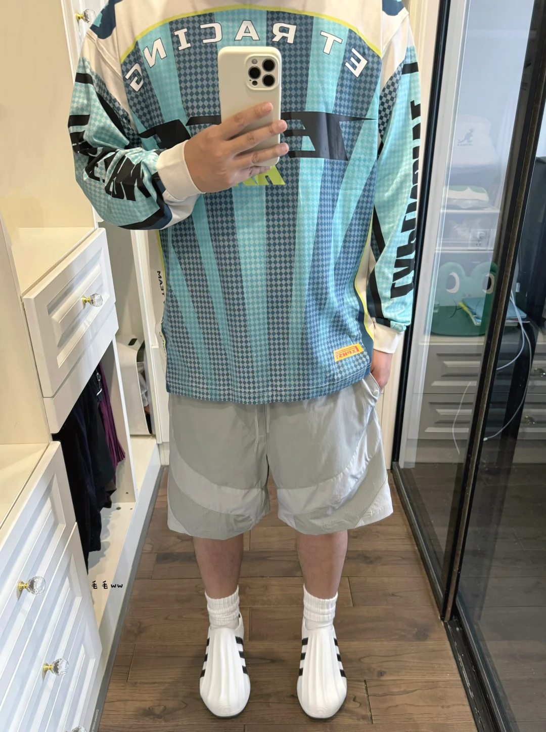 -Blockcore风潮又吹到了赛车服,彩色印花的大廓形TEE正适合当下,短裤跟长袜搭配增加层次感 . —————— . 👔Expensive Taste // M . 🩳Expensive Taste // L . 👟Adidas adiFOM / Superstar // 43 . —————— . ✏️本人178cm75kg 球鞋尺码265mm(正常EU42) . 💭以上均为我个人观点,不喜勿喷,欢迎讨论