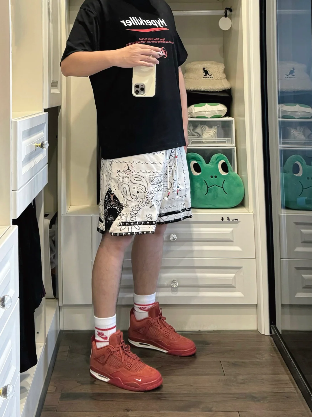 -“Brick by Brick”可能成为我的年度小红鞋,低饱和度的砖红色一点都不刺眼,不会像常规的大红色难搭配,长短裤已经尝试了几套,小伙伴们看看效果 . —————— . 👕Hyperkiller // L . 🩳Jordan / Travis Scott // XL . 👟Air Jordan 4 / Nigel Sylvester // 42.5 . —————— . ✏️本人178cm75kg 球鞋尺码265mm(正常EU42) . 💭以上均为我个人观点,不喜勿喷,欢迎讨论。