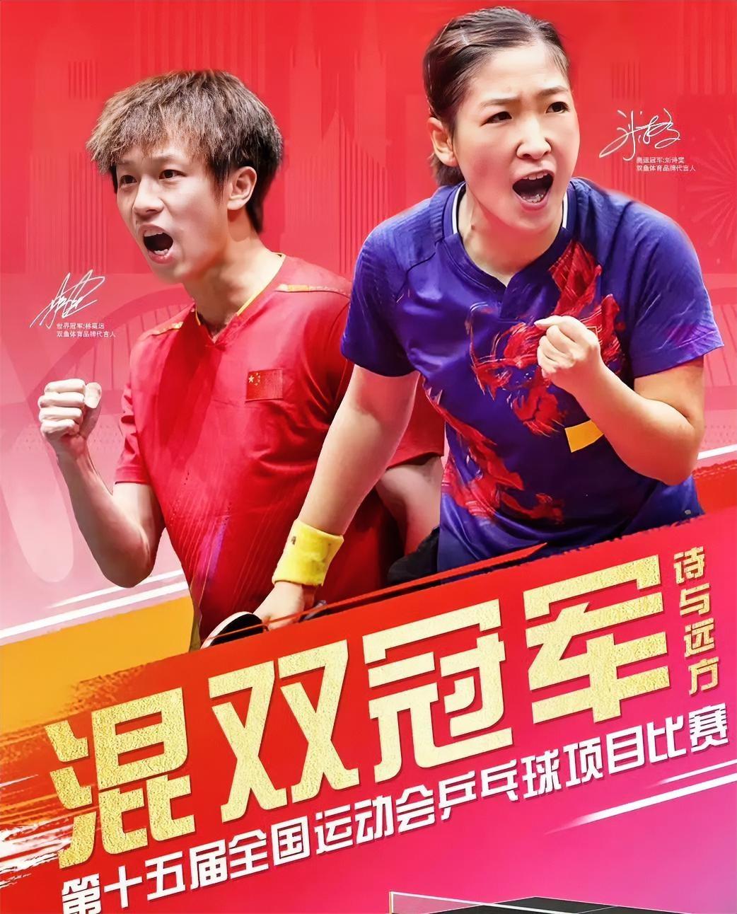 随着“诗与远方”组合,夺得全运会乒乓球混双金牌,最终名次出炉 1、林高远/刘诗雯(广东)——金牌🥇 2、陈垣宇/蒯曼(江苏)——银牌🥈 3、袁励岑/王艺迪(辽宁)——铜牌🥉 4、徐海东/陈幸同(辽宁)——第四名 林高远/刘诗雯两位老将真是太不容易了,特别是刘诗雯已经是第六次征战全运会,终于圆梦混双金牌。 第十三届全运会,两人意外一轮游,正赛第一轮输周雨/木子。第十届全运会,两人资格赛配对,结果到了正赛却被换搭档,林高远也是止步四强。 这一次,第十五届全运会,终于拿到了混双金牌!