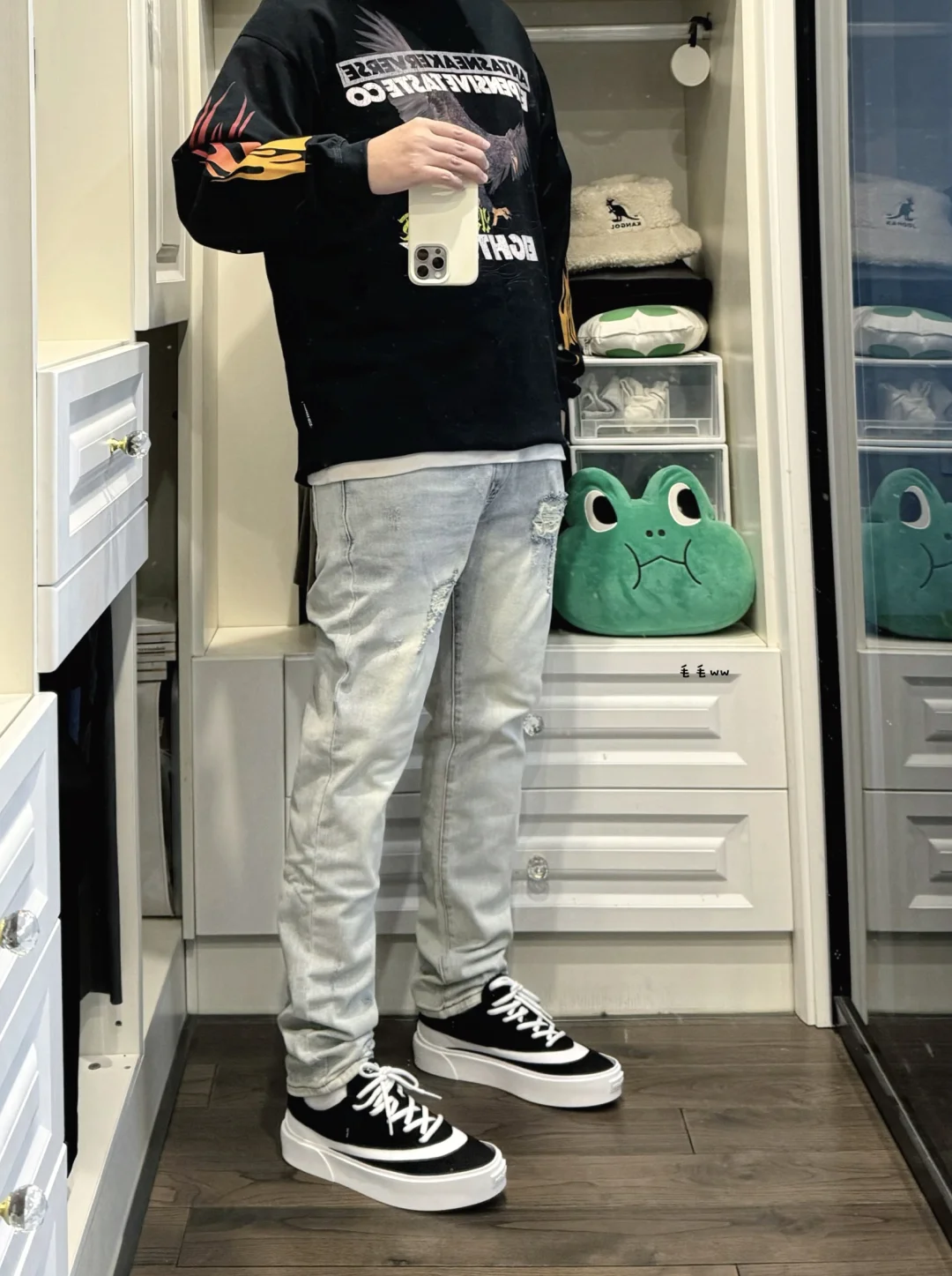 -又是一期显瘦穿搭,窄裤虽然热度退怯,但不得不说,还是非常显示身材比例 . -开春之后,卫衣&体恤又成为穿搭主力,在颜色不太跳脱的搭配下,牛仔裤很适用 . —————— . 👔Expensive Taste / Anta SV // M . 👖Profound / 做旧牛仔 // 30 . 👟EQLZ / fault lo // 42 . —————— . ✏️本人178cm75kg 球鞋尺码265mm(正常EU42) . 💭以上均为我个人观点,不喜勿喷,欢迎讨论。