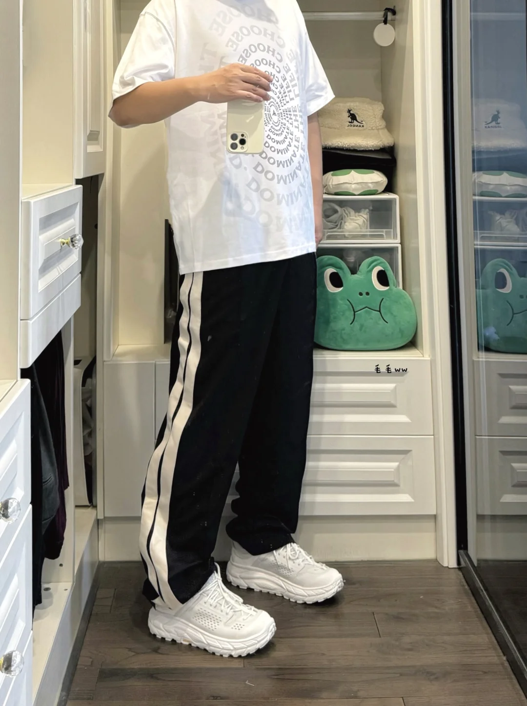-极简黑白色系,日常户外穿搭;印花白Tee,搭配侧条纹直筒裤;户外鞋也可以很轻便,适合通勤 . —————— . 👕Hyperkiller // L . 👖Coca-Cola // XL . 👟HOKA / tor ultra // 42 . —————— . ✏️本人178cm75kg 球鞋尺码265mm(正常EU42) . 💭以上均为我个人观点,不喜勿喷,欢迎讨论
