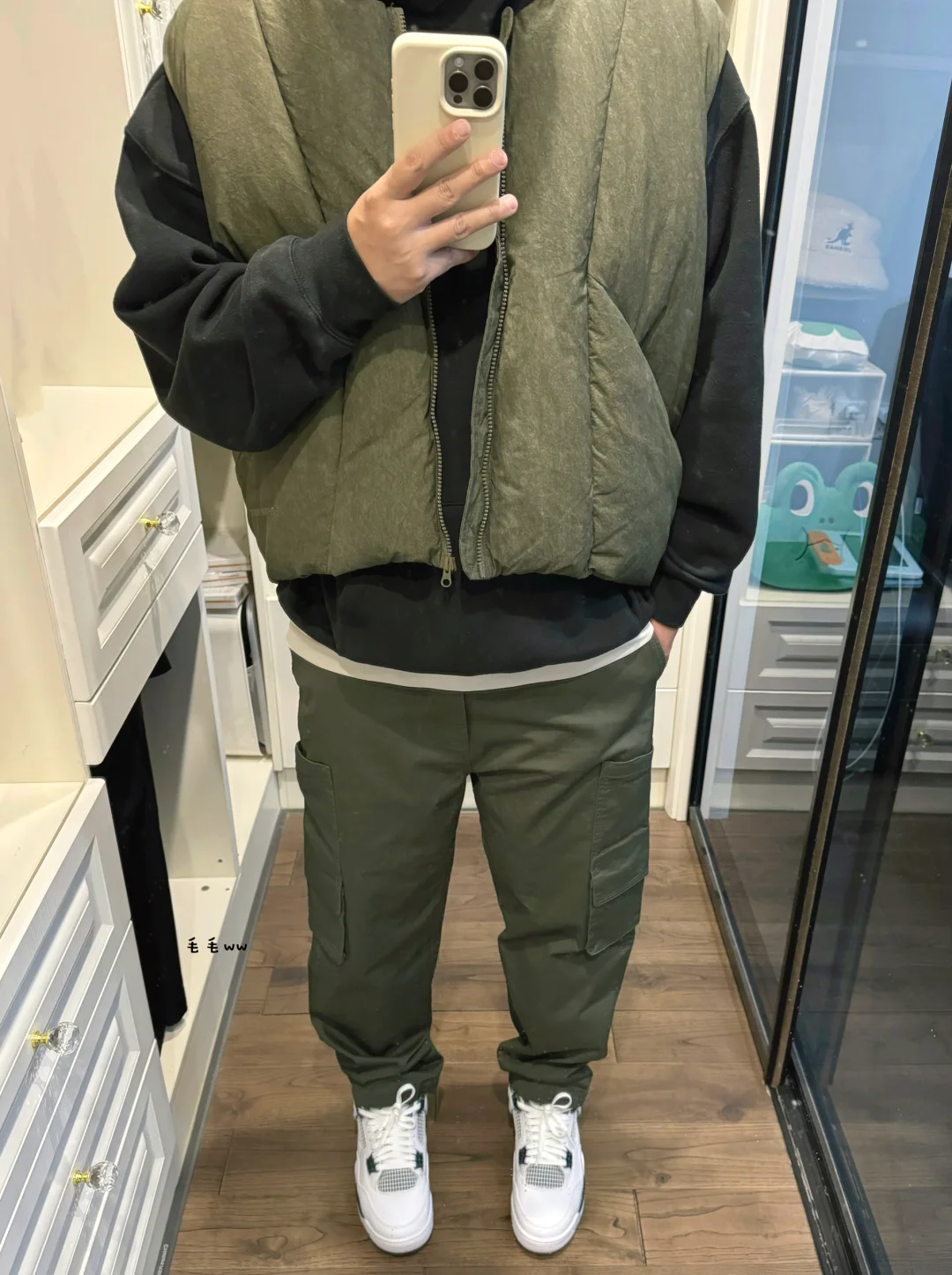 -羽绒马甲叠穿,配合卫衣,搭出街头感 -多口袋直筒裤,重磅斜纹布,主打实穿 -适合冬季的军绿色系,工装风同样契合 . —————— . 👔Fear of God // L . 🎽Expensive Taste // M . 👖Teenie Weenie Men // XL . 👟Air Jordan 4 / oxidized green // 42.5 . —————— . ✏️本人178cm75kg 球鞋尺码265mm(正常EU42) . 💭以上均为我个人观点,不喜勿喷,欢迎讨论。