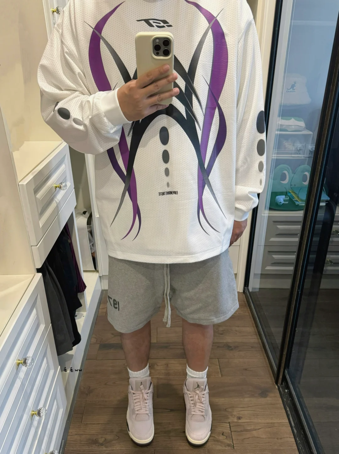 -Blockcore风从球服已经刮到了赛服;亮眼的配色,夸张的印花,宽松的廓形,配合心爱的球鞋来个上长下短穿搭,现在的气候再完美不过了 . —————— . 👔Expensive Taste // M . 🩳Fear of God / 1977 essentials // M . 👟Air Jordan 4 / A Ma Maniere // 42.5 . —————— . ✏️本人178cm75kg 球鞋尺码265mm(正常EU42) . 💭以上均为我个人观点,不喜勿喷,欢迎讨论