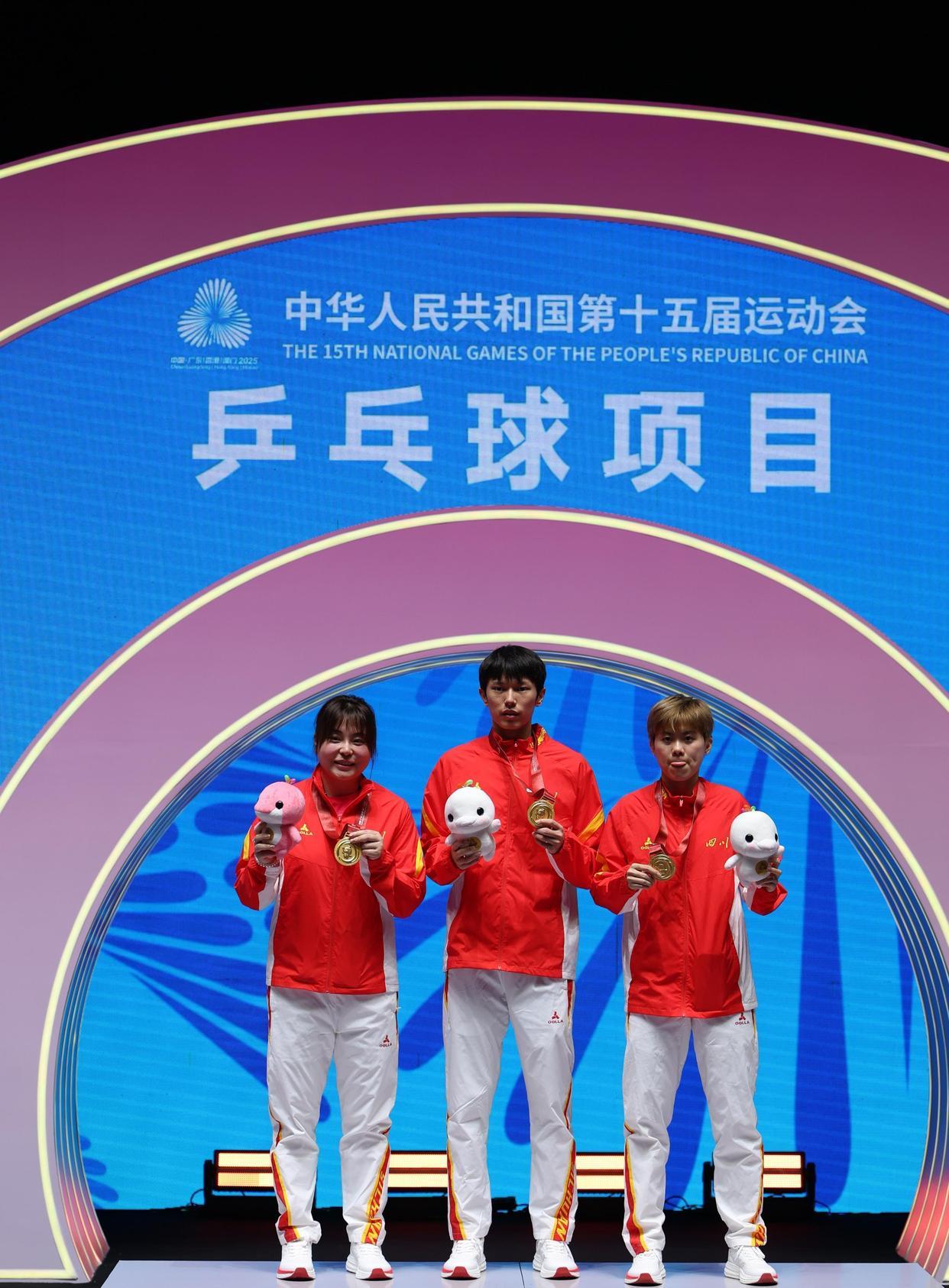 全运会乒乓球赛场的第一个冠军,居然是一对大多数观众连名字都念不太顺的年轻人。 夏志芃(péng)和高雨欣,这两个“00后”小将,在青年组混双决赛中,以4比1的比分击败福建组合,摘下了本届全运会乒乓球项目的首金。这场胜利的背后,藏着一段第二局3:8落后的大逆转。 当时场边不少观众都觉得这局可能要丢了,没想到这两个年轻人硬是一分一分咬了回来,最终以13:11翻盘。 这种心理素质,完全不像初登大赛的新人。夺冠瞬间,夏志芃和高雨欣激动地拥抱击掌。 夏志芃赛后坦言,第一局自己紧张得手都在抖,完全没打出训练时的水平。 但关键时刻,他想起了偶像樊振东在巴黎奥运会上的那次绝地反击。 “东哥那种不放弃的劲儿,一下子让我冷静下来了。 ”高雨欣则笑着告诉记者,她这场比赛完全是“拼”字当头。 “我们就是来冲击对手的,没想到真的把金牌冲下来了。 ”这个2005年出生的姑娘,谈起自己的偶像时眼睛发亮:“莎姐,就是孙颖莎,还有龙队马龙,都是我特别佩服的球员。 ”有意思的是,当记者把“莎姐”这个称呼转达给孙颖莎时,她先是一愣,随后笑出声来:“时间过得真快啊,我都成‘姐’字辈了。 ”她特别认真地对着镜头送上祝福:“希望这些弟弟妹妹们好好享受乒乓球,朝着自己的梦想努力。 ”这场决赛的另一大看点,是马龙和王楚钦的同门师弟,北京队的黄友皓。 这个17岁的小将在半决赛中遭遇了戏剧性的一幕:因为发球时抛球角度超过42度,以及踩端线等违规动作,他连续四次被裁判判罚。“说实话,这种判罚在青年比赛中很少见。 ”一位现场裁判私下透露,“可能是太紧张了,动作都变形了。 ”最终黄友皓组合0比4败给福建队,遗憾止步半决赛。 不过他在季军战中迅速调整状态,以3比0横扫香港组合,还是展现了过硬的心理素质。黄友皓的来历可不简单。 他哥哥黄友政是国家队主力,兄弟俩经常在家互相陪练。 12岁就拿过浙江省青少年锦标赛冠军,2022年还代表中国拿下亚锦赛U15男团冠军。 这次虽然没能进决赛,但圈内人都看好他的潜力。他的搭档杨惠泽更是了不得。 这个15岁的姑娘目前已经是国家一队的陪练成员,经常和王曼昱、陈幸同这些主力选手对练。 今年在WTT突尼斯站的比赛中,她曾经在3:9落后的绝境下连追8分逆转取胜。 “这姑娘打关键分特别冷静,”国家队一位教练评价道,“有种超越年龄的沉稳。 ”说到关键分,四川队的冠军组合在这方面确实有一套。 教练李茜透露,夏志芃的反手拧拉和高雨欣的台内挑打形成了完美互补。 “他俩最大的优势就是前三板,速度快、衔接流畅。 虽然体型偏瘦,力量还需要加强,但这次比赛他们把技术特点完全打出来了。 ”数据显示,这场决赛的转折点确实出现在前三板。 夏志芃的反手拧拉得分率高达67%,而高雨欣的台内挑打更是创造了5个直接得分。 特别是在第二局大比分落后时,正是靠着这几个关键技术,他们才实现了逆转。值得一提的是,这对冠军组合不仅是赛场上的搭档,学业上也步调一致,两人都被华东理工大学2025年单招拟录取。 “打球和读书从来不是对立的关系,”高雨欣说,“反而能互相促进。 ”