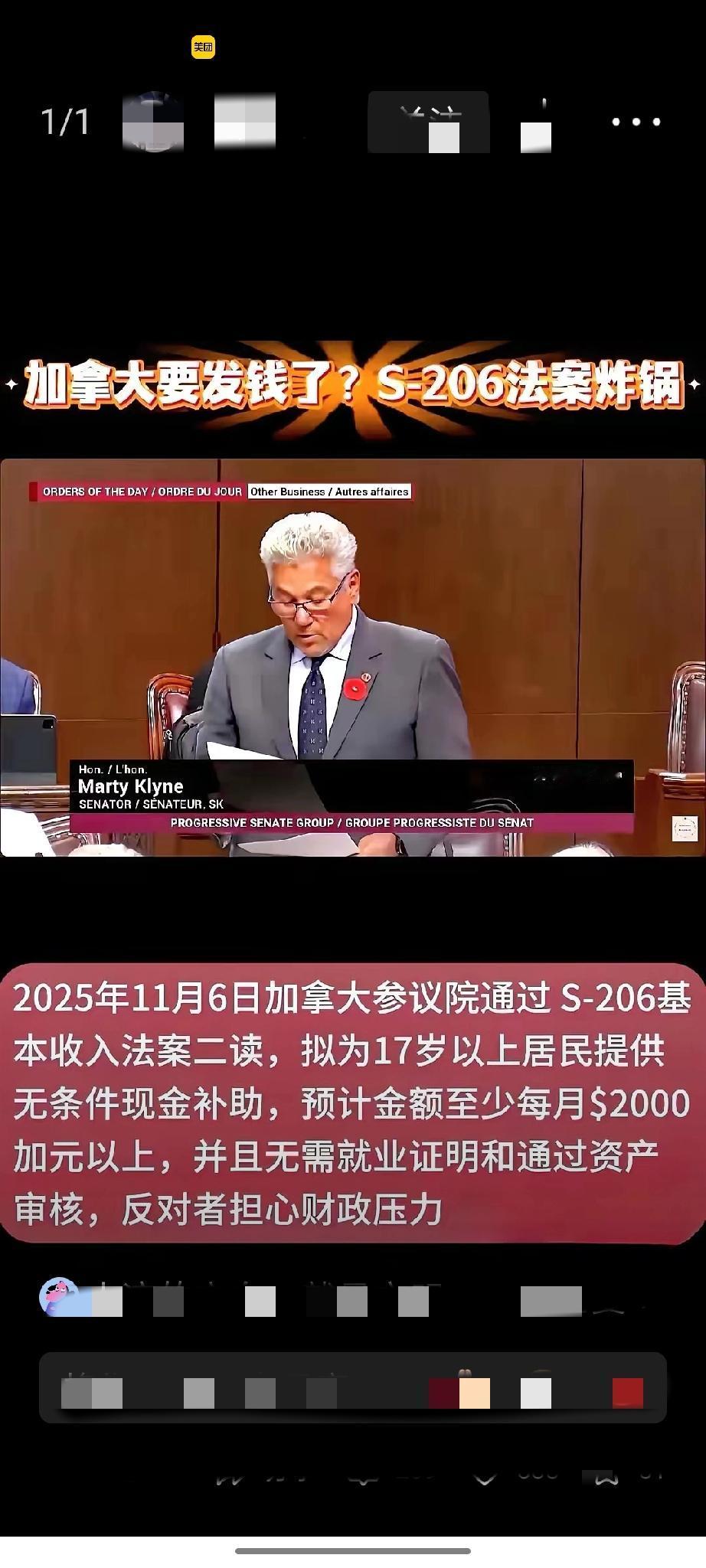 加拿大还过不过日子了? 6日加国议会通过法案,准备为17岁以上的公民,每月发放2000元的保障金。按加国4100万人口计算,17岁以上的公民得有3000万,每个月那不是要发600亿?这些腐朽的国家太坏了,这不是要消磨人们的工作热情吗? 按胡总编的观点,都发就等于没发,因为会引起通货膨胀。这些加国的议员都应该接受一下他的培训,不要干这些蠢事。 你像东印度,他们就不发,老百姓干的劲劲儿的。因为他们知道,幸福的生活哪里来?从辛勤劳动中来。一不等,二不靠,就是干!