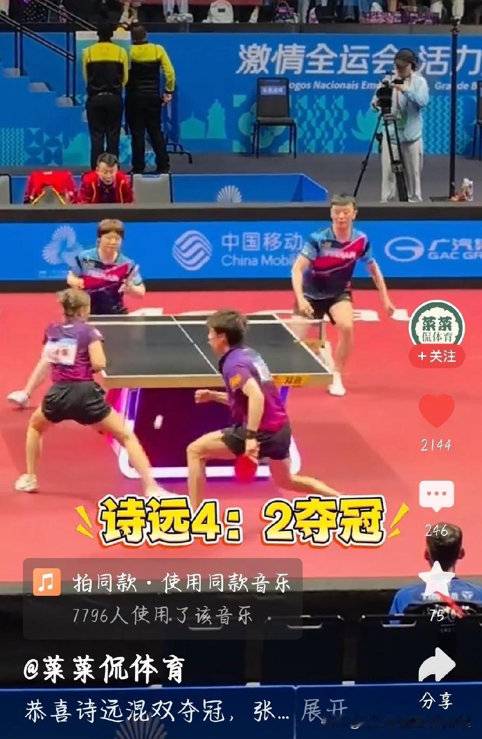 昨晚全运会乒乓球混双决赛看得我攥紧了拳头!34岁的刘诗雯搭档林高远,硬是从0 - 2的绝境里杀了出来,4 - 2逆转赢下冠军,成功卫冕混双金牌! 对面是二十出头的年轻对手,冲击力拉满,前两局直接把比分咬得死死的。可刘诗雯手上贴着肌贴,照样稳得住,和林高远一起调整战术,之后三局全以11 - 8拿下,最后一局更是12 - 10锁定胜局。 这已经是她第六次征战全运会了,上届和许昕搭档夺冠,这次换了搭档照样登顶。连对手蒯曼都夸她六战全运就是奇迹。没有靠情怀,全凭真本事死磕到底!岁月在她脸上刻下痕迹,却磨不掉骨子里的拼劲与热爱,这样的刘诗雯,值得所有掌声与呐喊——向老将致敬,为热爱加冕! 如何看待刘诗雯挺进全运会混双决赛 刘诗雯六战全运会卫冕混双冠军 刘诗雯十年磨一剑的冠军如何来的? 刘诗雯:宝刀未老只因坚守与热爱 刘诗雯 全运会