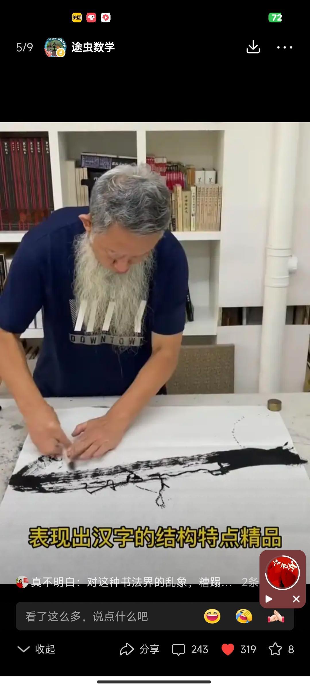 中国当今书法界三大奇人,公认的流量书法大师,这是书法大师们正在创作的视频截图。图一,吼书大师曾翔,一把扫帚写天下,气势磅礴第一人,写的是啥不知道,关键是要这气质。图二,谢书大师邵岩,手掘注射器,射出一串字,火的不得了,写的啥玩意。图三,狂书大师张瑞年,边写边吼边跳弹,写完之后还要把作品撕的稀巴烂,这艺术氛围就问你习惯不习惯。其实还有很多书法大师,在流量自媒体时代脱颖而出,写的好不好真的不重要,关键是要有流量。大家认为谁的字最有特点,最牛?头号创作者激励计划 书法大师