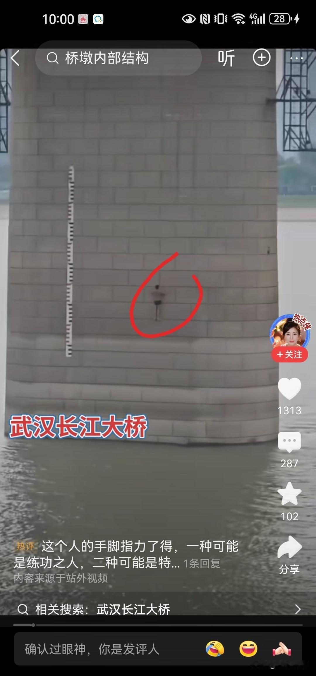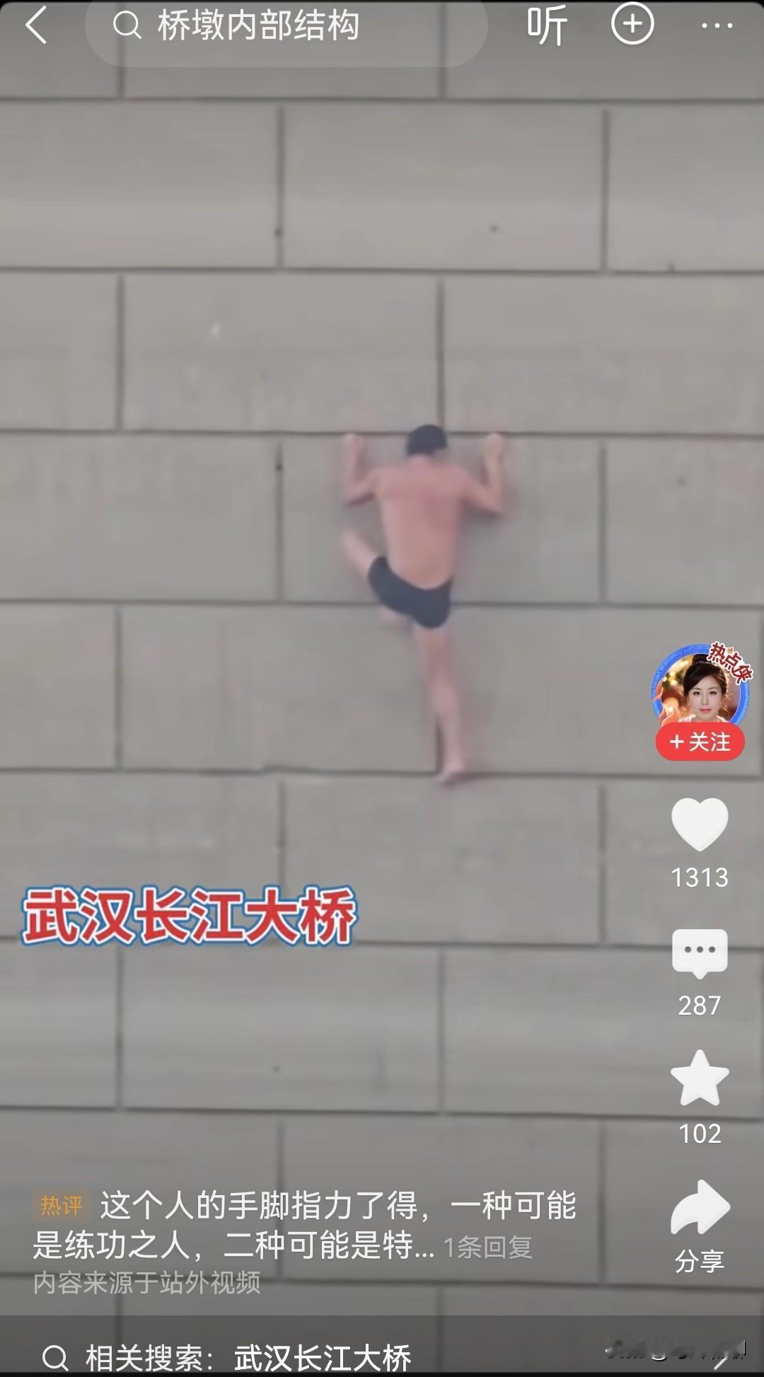 这位大哥绝对是攀岩界的高手,不借助任何工具,仅用两只手就能攀上桥墩,看着也不吃力,这绝对是个狠人。之前见过“蜘蛛人”攀登摩天大楼,却第一次见有人攀爬桥墩,不过看着危险,其实一点也不安全!(图片来自网络) 攀岩 蜘蛛人外墙 蜘蛛人高空加油 攀岩人 徒手爬楼梯 徒手攀爬高楼 徒手攀岩桥