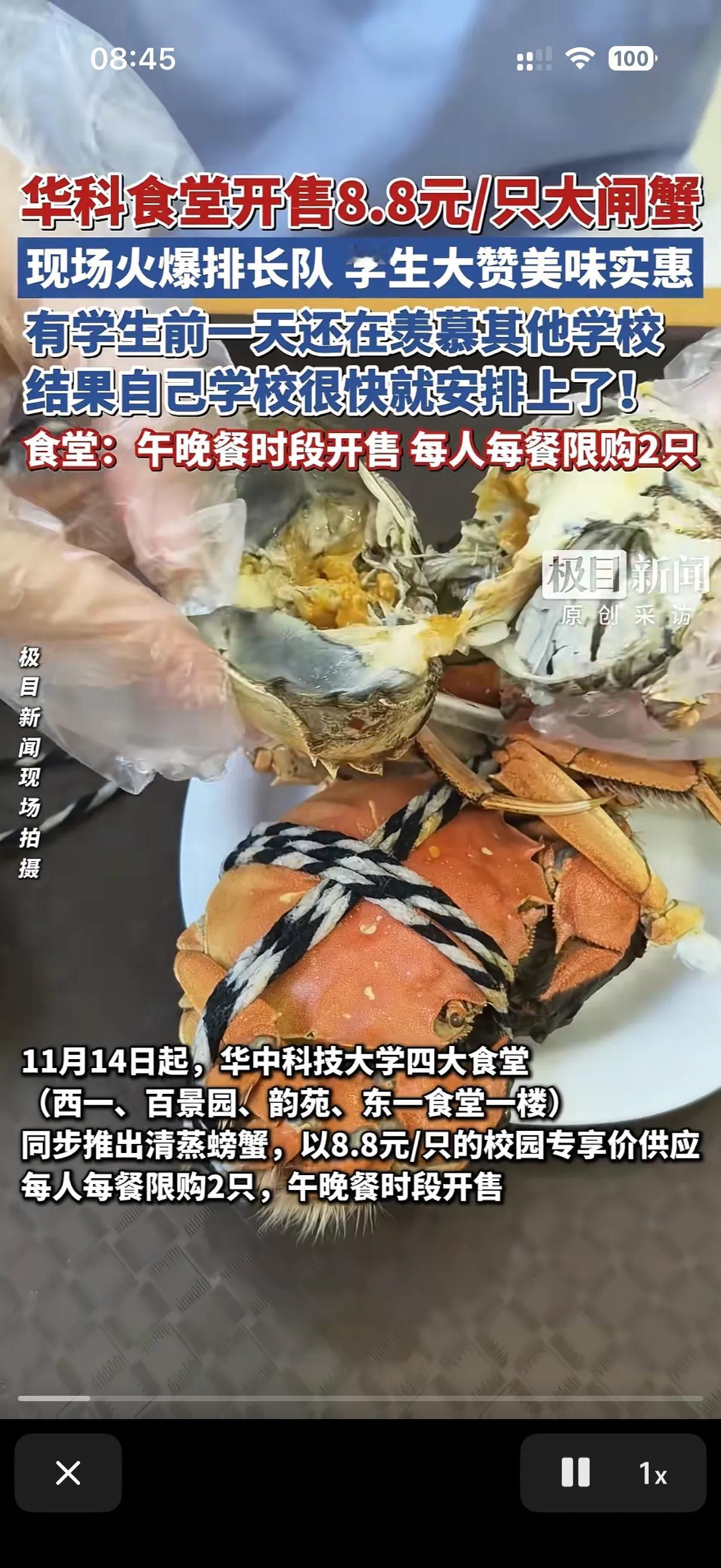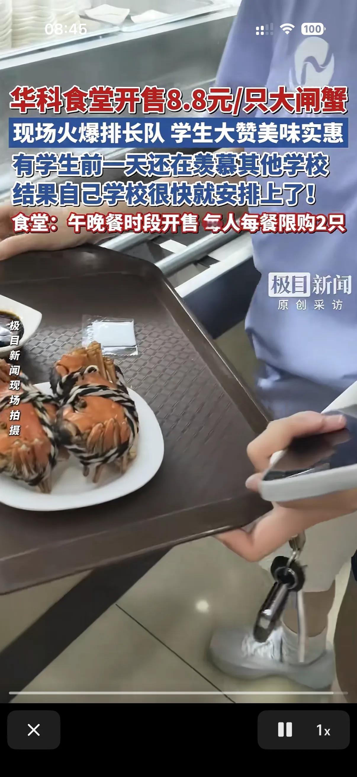 这次华科大学的8.8的螃蟹可以说是让很多大学的学生羡慕了!看看华科大学的螃蟹,再