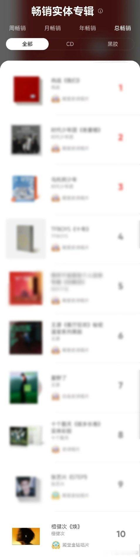 檀健次二专《焕》已经来到年榜第三,总榜第十了,好快啊