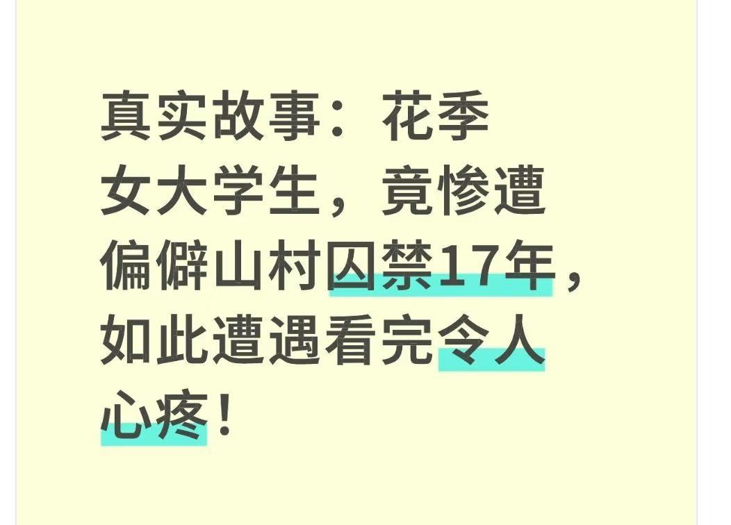 1995年,20岁的女大学生被人贩子120元卖给38岁光棍老男人,被放在猪圈关押长达17年,每天吃剩饭与鸡鸭同睡,获救时已是疯癫状态。 1995年晚,20岁女大学生何成慧兼职家教后独自回校,遭面包车拦截,被一男子用棍打晕。醒来后,她的嘴已被毛巾堵住,意识到自己可能被卖。果然,人贩子趁她昏迷时以120元将她卖给老光棍倪天国。 倪天国满脸猥琐,身高不足160,称何成慧是他花120元买的老婆,拒绝其求救并威胁不许反抗。次日傍晚,倪天国端来馊饭,在何成慧饥饿无力时强行与其发生关系,还要求她生儿育女。 此后倪天国每日都来侵犯,见何成慧未怀孕便拳打脚踢。十几年过去,何成慧从貌美女大学生变成疯癫老太太,倪天国不再囚禁她,任其自由活动。2012年,四川记者听闻村里有个会说英语的女大学生。 便前往倪天国家采访。随后记者被其家中如垃圾堆般杂乱、奇臭无比的景象震惊,经不懈探究,得知何成慧为减轻家庭负担做兼职,结果被拐音等行最终精神失实在令人惋惜。