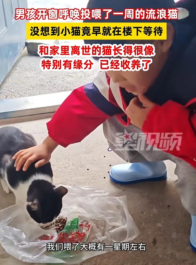 “这一定是特别的缘分!”安徽合肥,一位妈妈正和儿子在家里吃饭,没曾想,孩子突然放下碗筷,朝窗外喊了声“咪咪”。妈妈起初没在意,以为孩子只是无聊在玩闹。可当她顺着孩子的目光往楼下看时,发现一只橘猫正蹲在楼下空地上,仰着头,一动不动地望着他们家的窗户 那只猫的眼神很特别,不躲不闪,像是认识这扇窗,也认识窗里的人,孩子抓了把猫粮就往楼下冲,妈妈跟着一路小跑。小猫看到孩子后也是安安静静吃猫粮,不躲也不闪 这事要是只发生一次,大多数人都会当成巧合。可这家人跟这只猫的故事没那么简单 孩子妈妈说,他们家原本养了一只猫,跟这只流浪猫长得很像。十月中旬那只猫生病走了,全家人心里都空落落的。偏偏就在那天,他们在路口遇到这只长相相似的流浪猫。第一次见面,猫就贴人得很,蹭着蹭着还趴到了爸爸腿上。喂了点粮就走,可从那之后,他们只要路过附近,几乎都能遇见它 有时候,缘分就是这么说不清道不明,一只猫日复一日的等待,一个孩子毫不犹豫的分享,就促成了这个缘分 很多人说猫是冷性的动物,其实街上的流浪猫,大多比家猫更敏感。哪家人对它好,哪只手递过温热的食物,它都能记得很清楚。这只猫的出现,也许不是来替谁,也不是来填补情绪的,但它确实像刚好出现了 情感有时候不需要解释,能被看见就已经是答案。孩子那天突然冲到窗边,并不是巧合。他喊出那声咪咪,也许不是叫猫,而是叫回一种熟悉的陪伴感。猫那天来楼下,可能是肚子饿,也可能是觉得那扇窗户里有人理解它