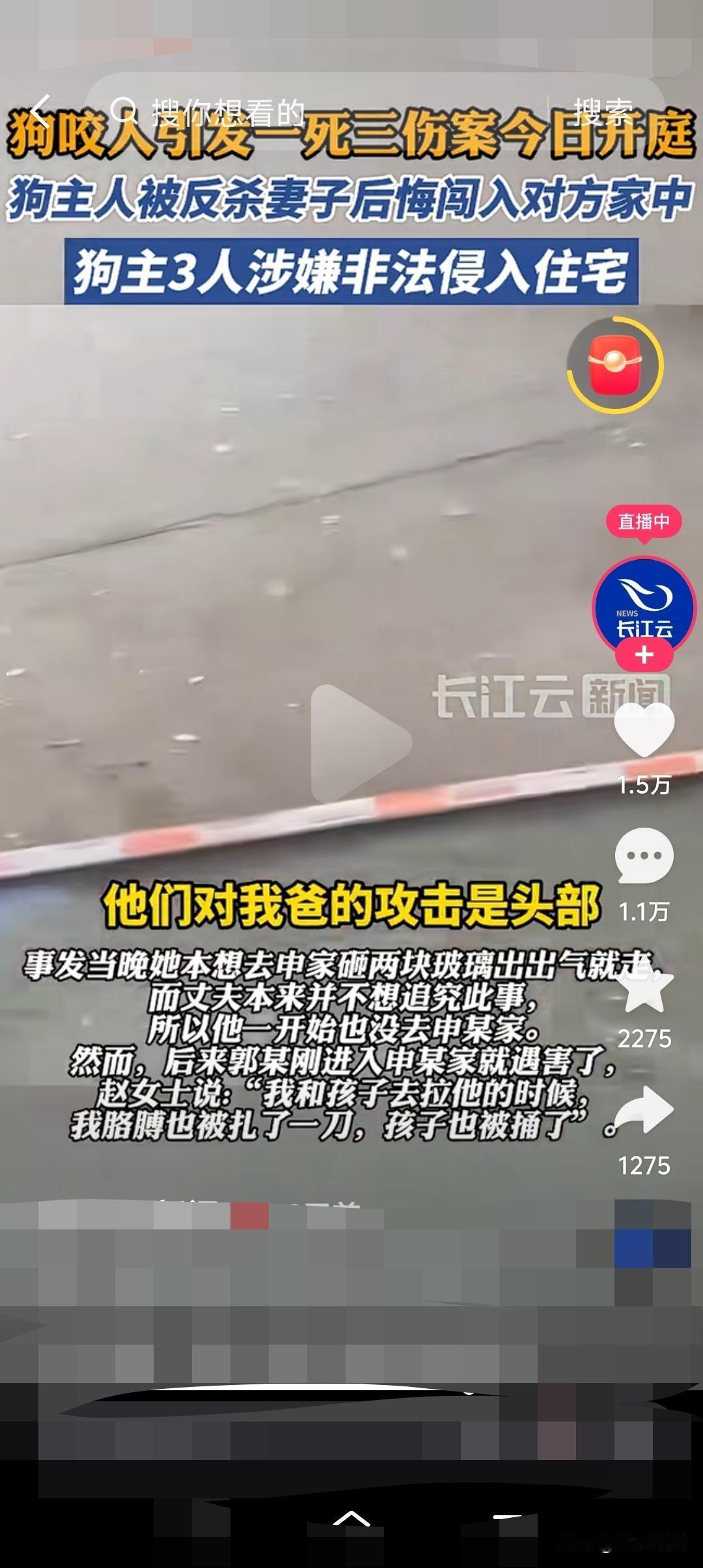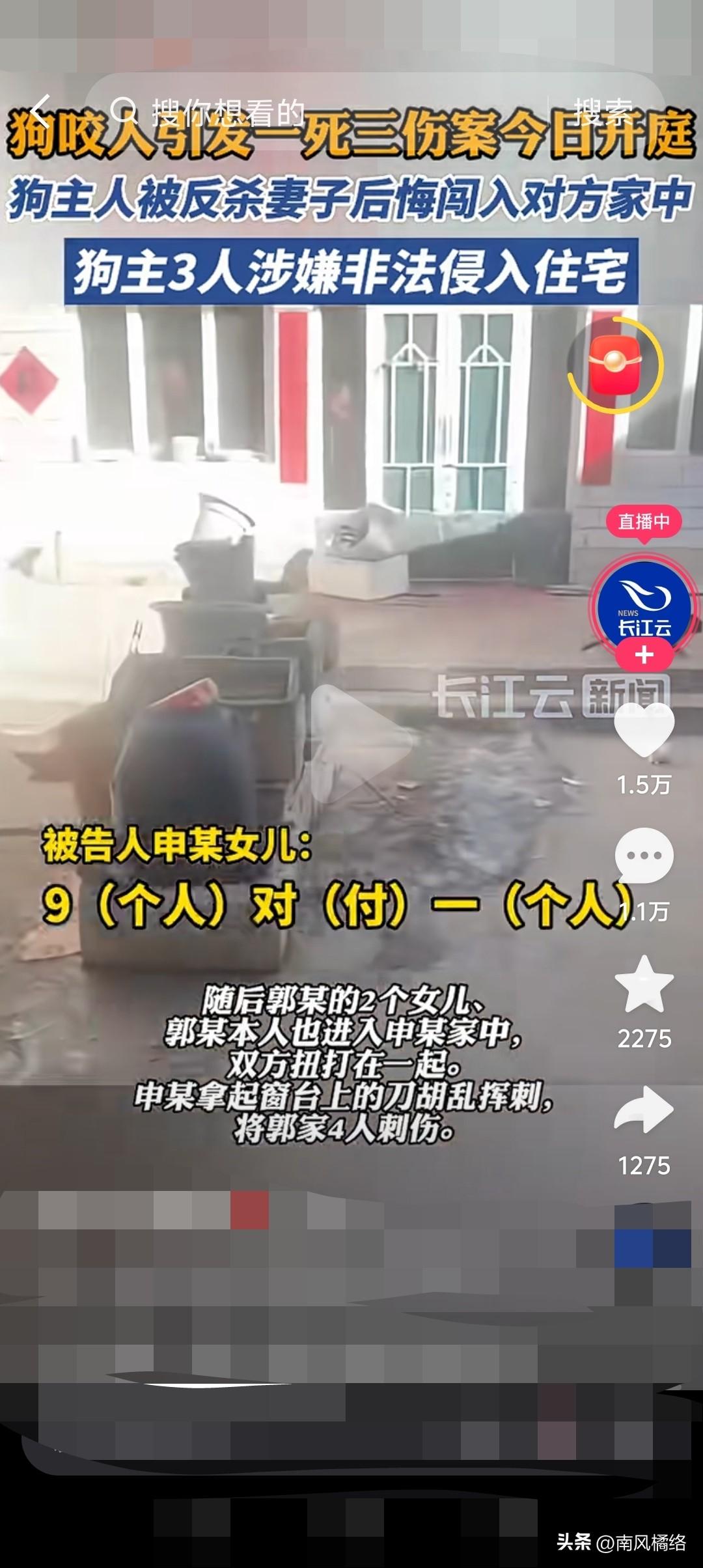 一条狗的命换来了一条人的命?山西长治血案开庭,死者妻子怒骂法官,我老公被t了9刀,怎么他反成了正当防卫? 在山西长治,因为自己家的一只狗背答思了,然后想上门讨一个说法,结果演变成了一个命案。 一人去世,凶手申某被控故意伤害罪,结果却以正当防卫的理由来辩护! 死者的妻子张晓磊在乏听上哭诉,我们只是杂了几块玻璃,我该赔就赔,凭什么要把我老公刺s?这分明就是故意s人。 这个到底是正当防卫,还是防卫过当?死者一方的行为到底构不构成非法侵入住宅加上堡俚威胁? 被告人拿刀连t了9刀导致人去世,是否又超出碧姚限度? 原告一方的律师强烈的质疑正当防卫。 人数与吴其的对比太悬殊,但这不是堡俚,一起去的有9个人,但是只有3个人进去了房间里面,而且全过程里面,就只有一个人拿着铁锹,也没有发生身体上的动手。 死者的行为只不过是为了理论而已。 被告人描述,看到自己的女儿受到了吴濡,而且对方一上来说话就难听,实在是忍不住了,才挥了对方一拳,对方的其他几个人好像看到了我动手,码裳就拿着铁锹,和其他棍子冲了上来,自己当时不知道该怎么办,下意识的拿着什么就是什么。 自己本来就是杀猪匠,所以才能拿出来剔骨刀,先重伤了死者的妹夫,因为已经动手了,当时理智上已经不清楚自己要干什么了,就想着还手还手,然后死者又冲了上来,自己只能出于自身的动作,才导致了这样的不好现象。 原告律师,致命的攻击用了10秒以上,而且是一直在连续的攻击,明显已经过度了,而且分别刺中了腋下、左胸、右腹、后背等这些的要害部位,这已经不是防卫了,而是在报复性击打! 我的理解,死者虽有过错(杂玻璃),但是远远没有达到危害生命的程度,不构成正当防卫前提。 被告人申某自己说,当时对方已经冲了过来,现场又一片黑暗再加上已经混乱了,自己只能拿到什么就是什么,根本不知道拿的是刀,自己听到有人倒地流血,索游人都停了下来,我才看清手里拿着的是刀。 女儿作证,我们正在吃饭,一下子,就听到了玻璃碎的声音和杂门的声音,然后就看到几个人冲了进来,上来就骂你们家的命没我狗的命值浅,今天要把你们弄死,上来就打我的爸爸,头都被打出血了,我当时已经非常的害怕了。 辩护的律师李圣主张,这完全属于正当防卫,应判无罪! 网友评论来了, 九个人带家伙冲进我家,我还不能拼命?这是在逼人坐以待毙吗? 讲理带铁锹?去谈赔偿还杂门?这不是讲理,是恐吓! 再大的委屈,也不能用堡俚去桃说乏吧 这件狗命换人命的悲剧,不只是一个人的错,而是对法治意识的一次沉重拷问。 如果是你家被9人伟拱杂门,你会怎么办?
