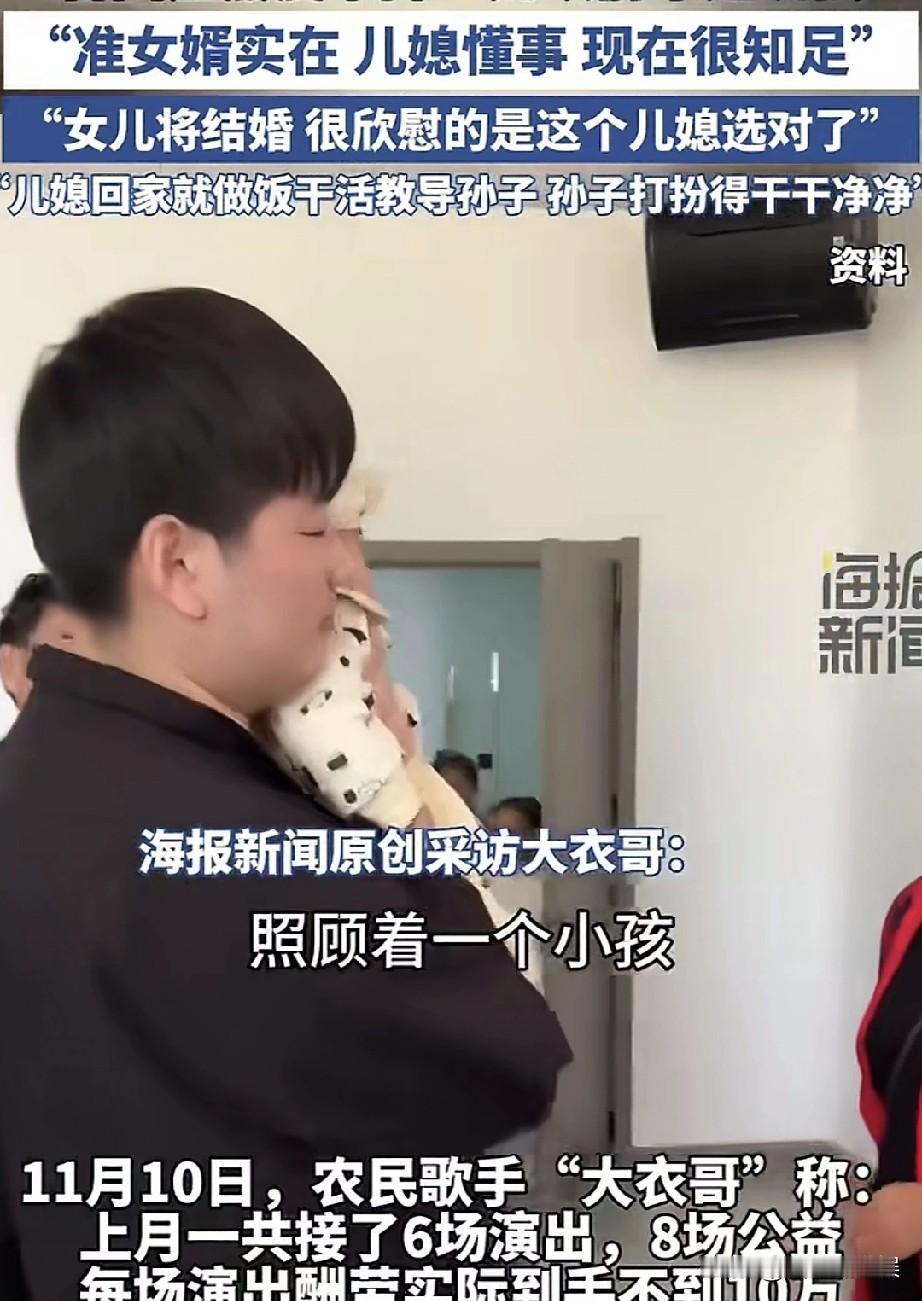 大衣哥公开表扬儿媳妇 他在近日的采访中,直接表示,这个儿媳妇是找对了,走完亲戚回家就开始做饭,带孩子,把小孙儿收拾的干干净净 一家人都很疼爱陈萌,自己不会给她气受,如果有外人给她气受,也不会同意 该说如今女儿也有了着落,女婿老实懂事,很优秀,自己对现在的生活很满足 其实朱之文说对了,找妻子就得陈萌这样的,容易满足,顾家,毕竟朱小伟也没有太多本事,强拉到人前,话题虽然多,但基本上都是负面的。