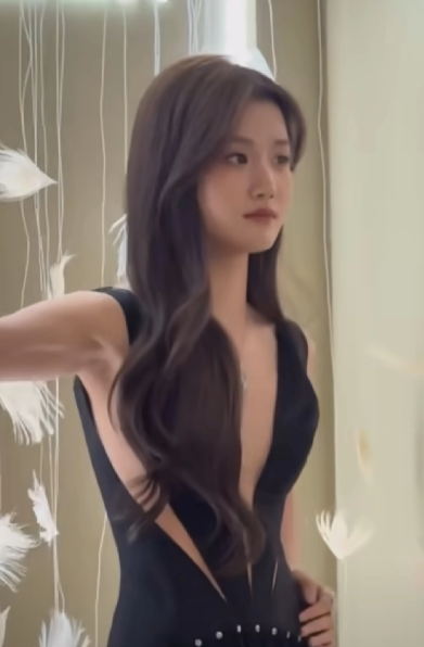 还以为这已经够突破了,没想到卢昱晓还留有绝招呢,第二套是一个深v镂空裙,直接开到肚脐,两侧的腰间也是镂空的,服装之大胆在内娱也能数的上了