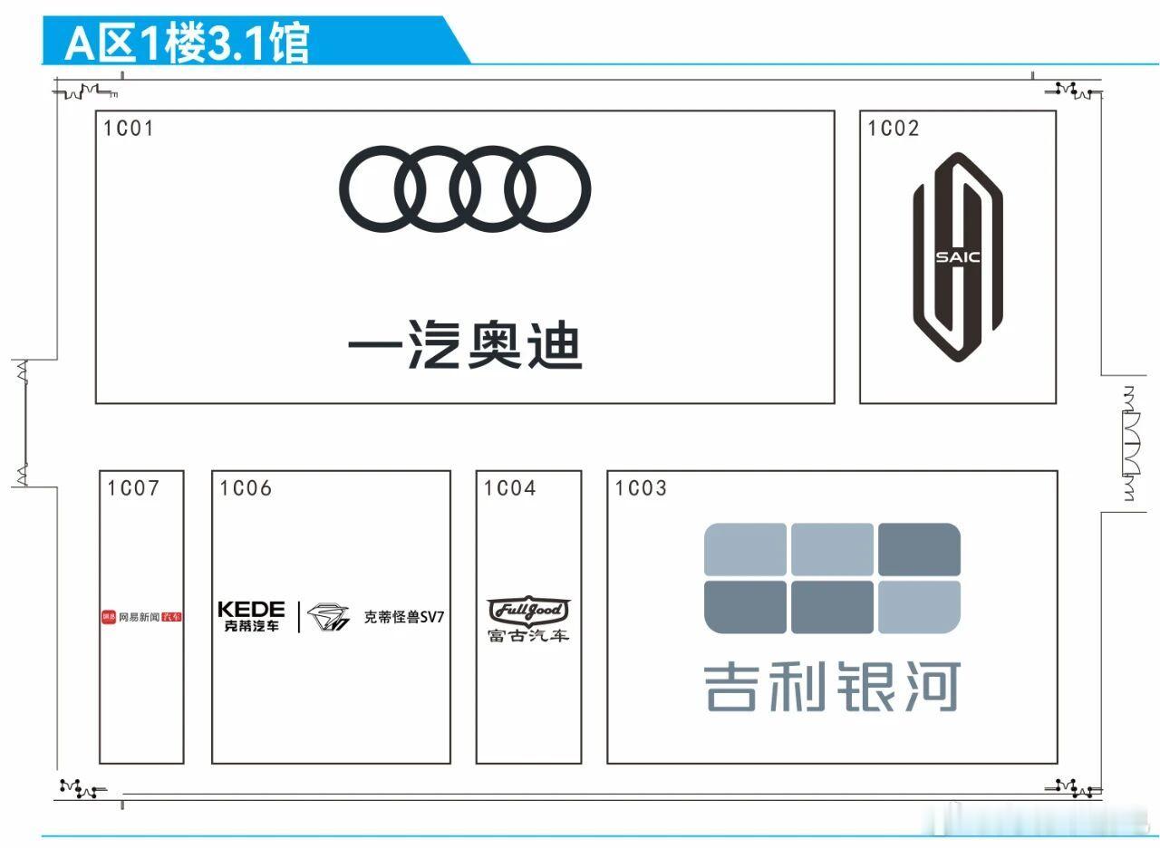 广州车展展位图来了,大家自行查收说几个重点展厅:1.1 展厅大众三合唯一,红旗依然是巨大展厅2.1 展厅比亚迪包馆,除了五网四品牌,还有兆瓦闪充和天神之眼展示区,2.1 外部还有仰望 U8 的应急浮水展示2.2 广汽主场,3.1尚界首次亮相车展4.1 长城整合了WEY 欧拉 哈弗 坦克 长城炮4.2 一半被奇瑞系承包 5.1 北汽系(包含享界在内) 5.2 问界 17.2 小米 小鹏 乐道 阿维塔 智界齐聚一堂 18.2 鸿蒙智行 岚图 东风日产(N6 要来了)19.2 零跑(A10) 理想 智己