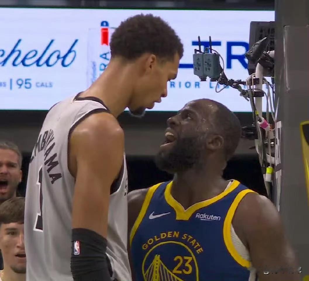 格林遇到对手了! 今天勇士战胜马刺的比赛过程中,发生了让人忍俊不禁的一幕。格林与文班亚马因卡位的身体接触爆发矛盾,两人面对面喷垃圾话,格林挺抬着头看向高高在上的文班亚马,这搞笑的一幕被抓拍到了。两人吵了一会就分开了,说不定格林都后悔与文班亚马对峙了,这年轻人一点不怵,自己一不小心就成背景板了。