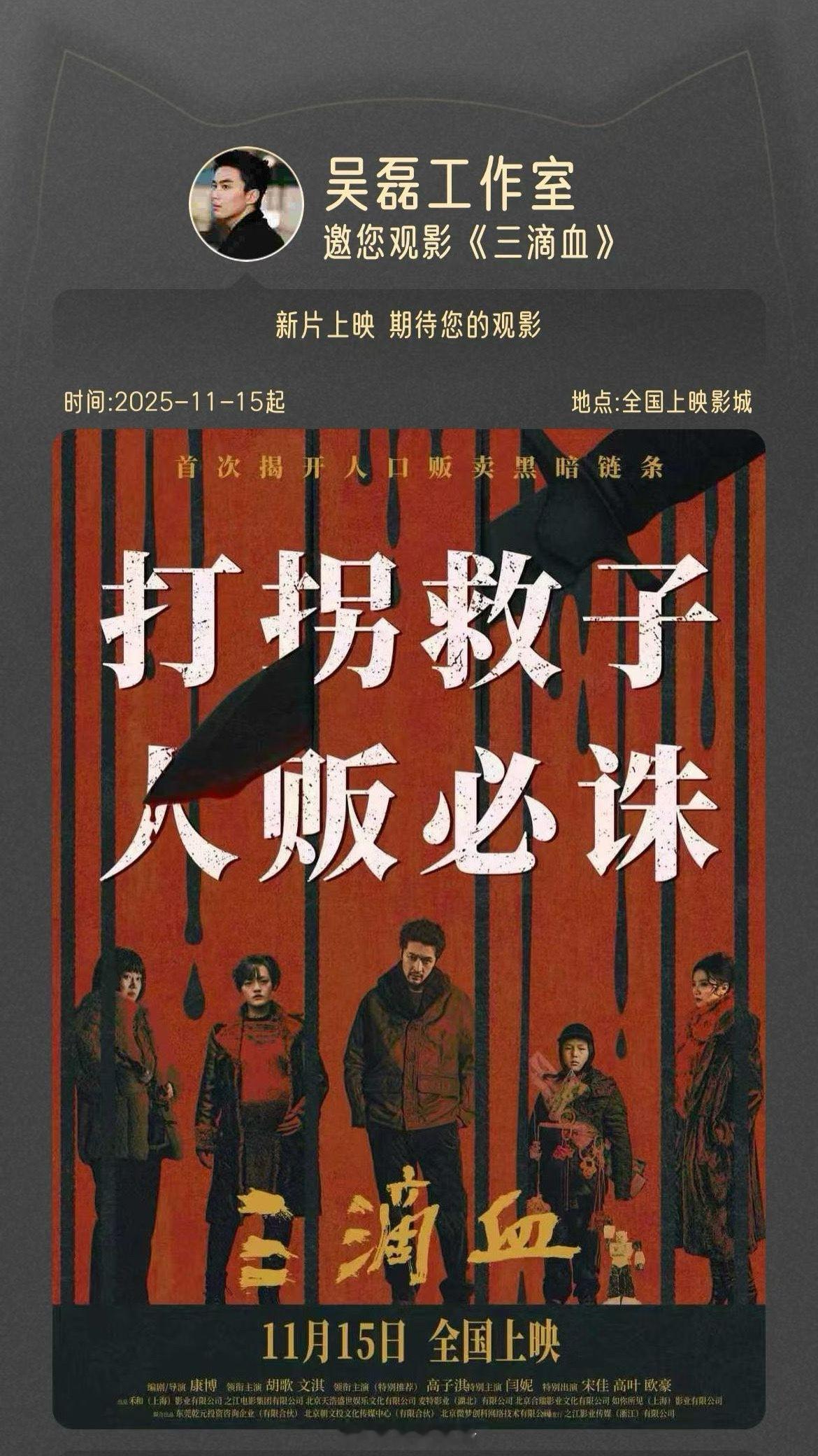 吴磊工作室包场支持胡歌正在上映的电影三滴血啦,当年的小飞流和梅长苏,现在都能看到售后。吴磊好长情。