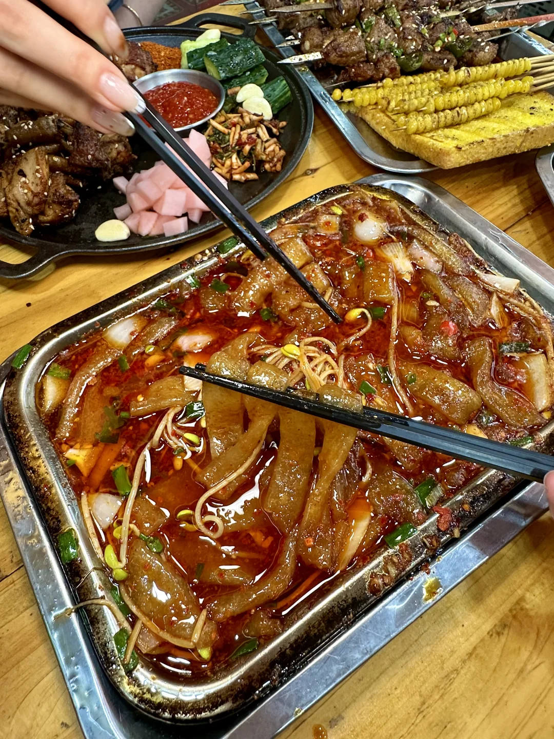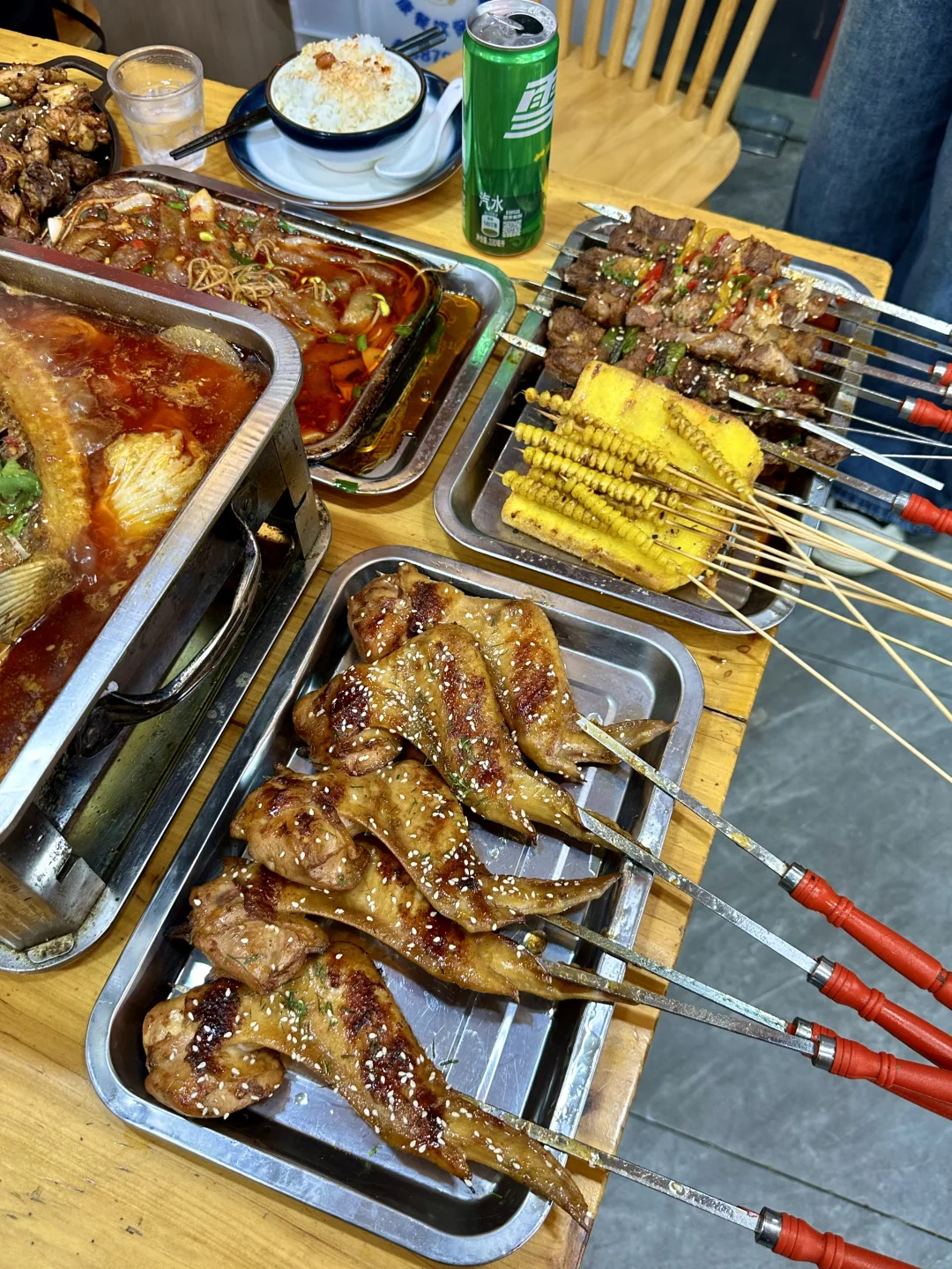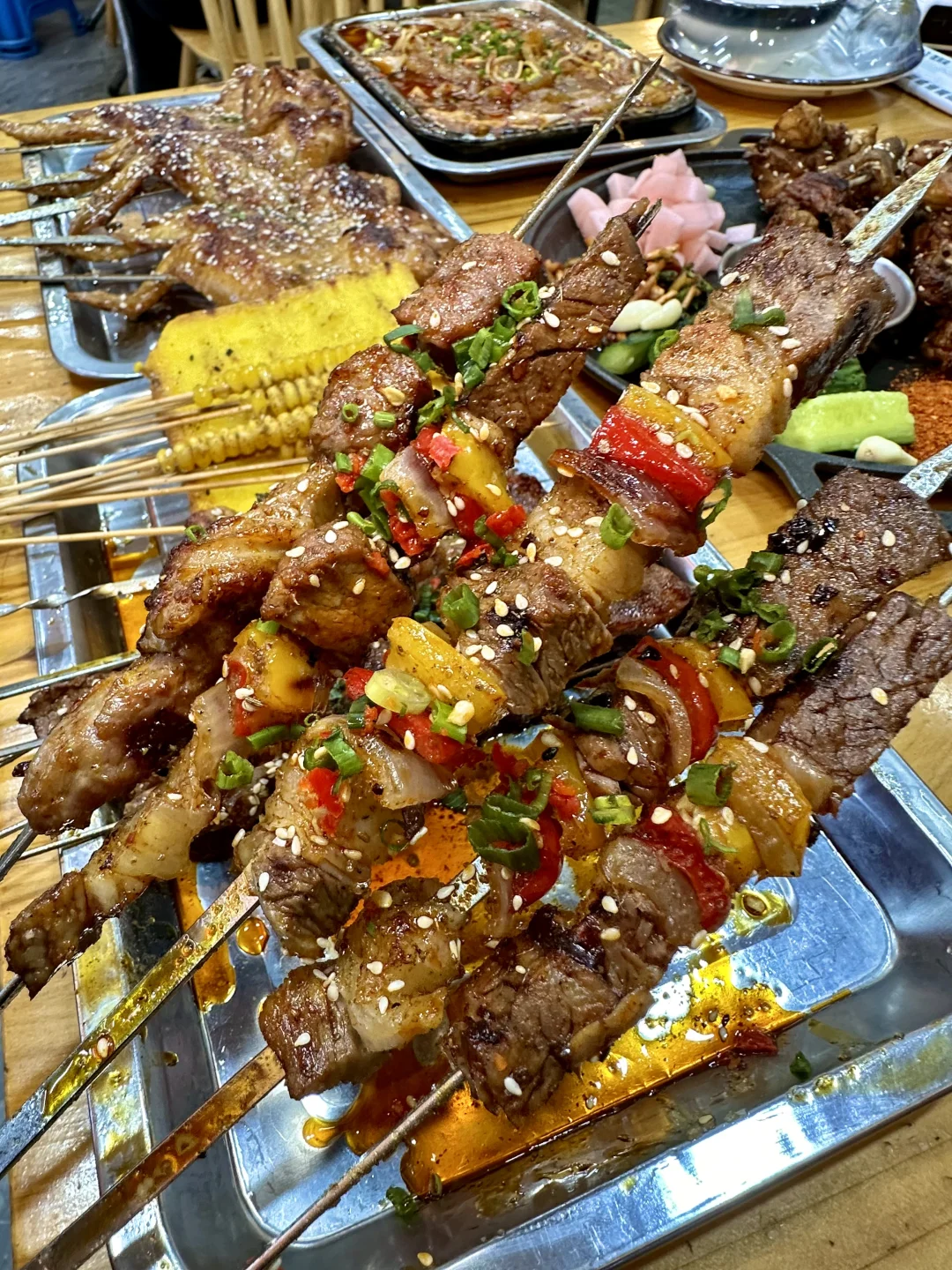 座无虚席…… 烤鸡、湿辣牛肉都好好吃!!各式烤串…而且是鲜肉腌制现串的,个人感觉超越我在沈阳旅游吃的