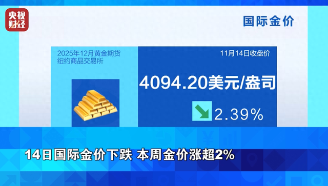 14日国际金价下跌本周金价涨超2%