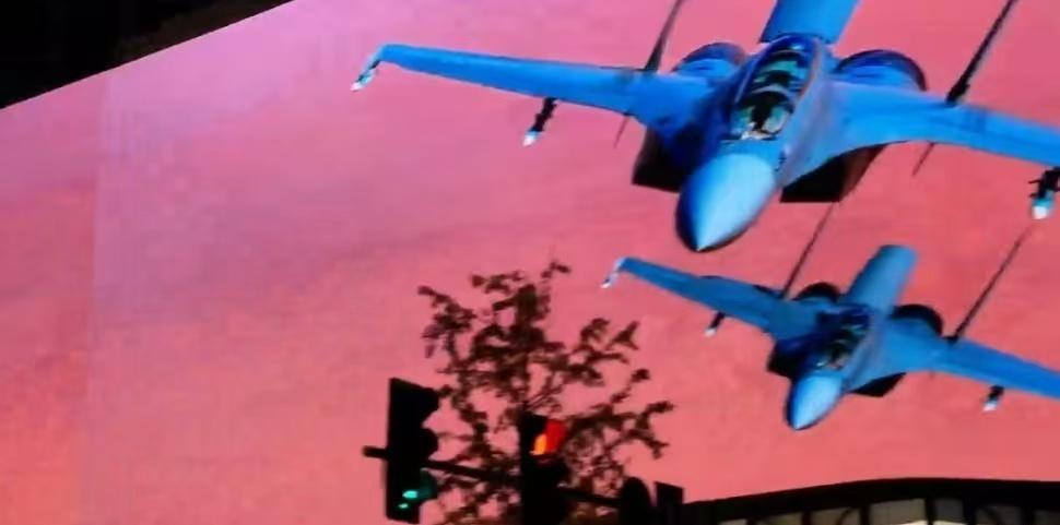 大国之翼的风采在都市核心绽放!3D巨幕让战机仿佛冲出屏幕,搭配空中编队的轰鸣,科技感与硬核实力碰撞,每一幕都让人热血沸腾