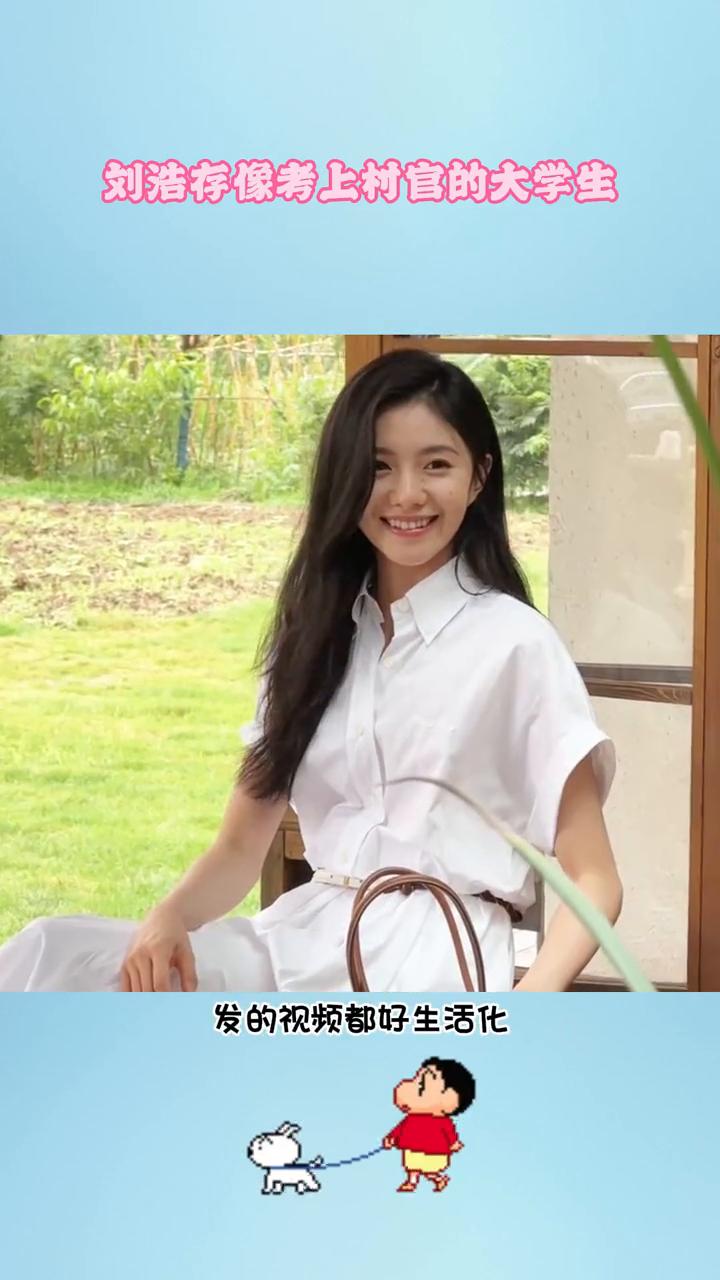 刘浩存像考上村官的大学生。 看了刘昊宸的日常,终于懂了那句生活可爱万物成诗。他就这么简简单单的出门了,和普通人一样没有精致的服饰,连发型都是简简单单的高马尾。在他身上看到了一种老式年轻人的感觉。他还是一如既往的爱摆树叶玩,也不会跟风玩时下最热门的梗和抖舞。发的视频都好生活化,网友姐像考上村官的大学生。