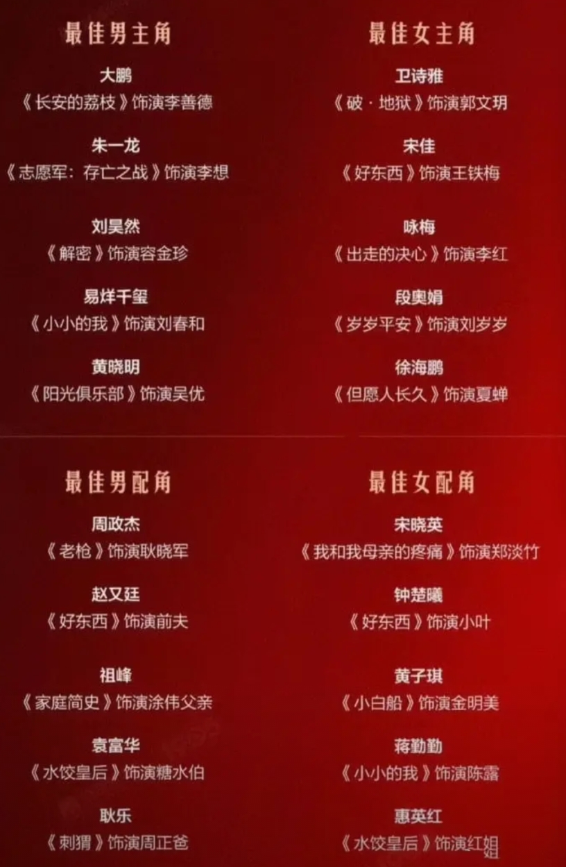 金鸡奖不愧是中国电影奖项的天花板,提名表彰仪式演员类奖项出席率高达85%!20位候选人只有朱一龙、祖峰未能到场,咏梅在赶来的飞机上,其他提名者均盛装出席,神采奕奕的接受表彰。 要说今年竞争最激烈的奖项无疑是最佳男主角,堪称白热化。 黄晓明凭借《阳光俱乐部》已摘得上海国际电影节金爵奖影帝。 大鹏凭借《长安的荔枝》已摘得中美电影节影帝。 刘昊然凭借《解密》已摘得长春电影节金鹿奖影帝。 易烊千玺凭借《小小的我》已摘得中国电影导演协会年度男演员等荣誉。 《志愿军:存亡之战》里的朱一龙,虽然还未获过奖,但表演实力有目共睹。尤其最后的一句“军长,我们回不来了”,战场破碎感溢出屏幕,让人瞬间泪崩! 大家觉得本届金鸡奖影帝会花落谁家呢? 个人还是押宝千玺弟弟。第四次入围,表演难度大且完成度高,应该到他的轮次了。本届金鸡奖很可能诞生史上最年轻、也是首位00后影帝。 让我们拭目以待11月15日奖项的揭晓!