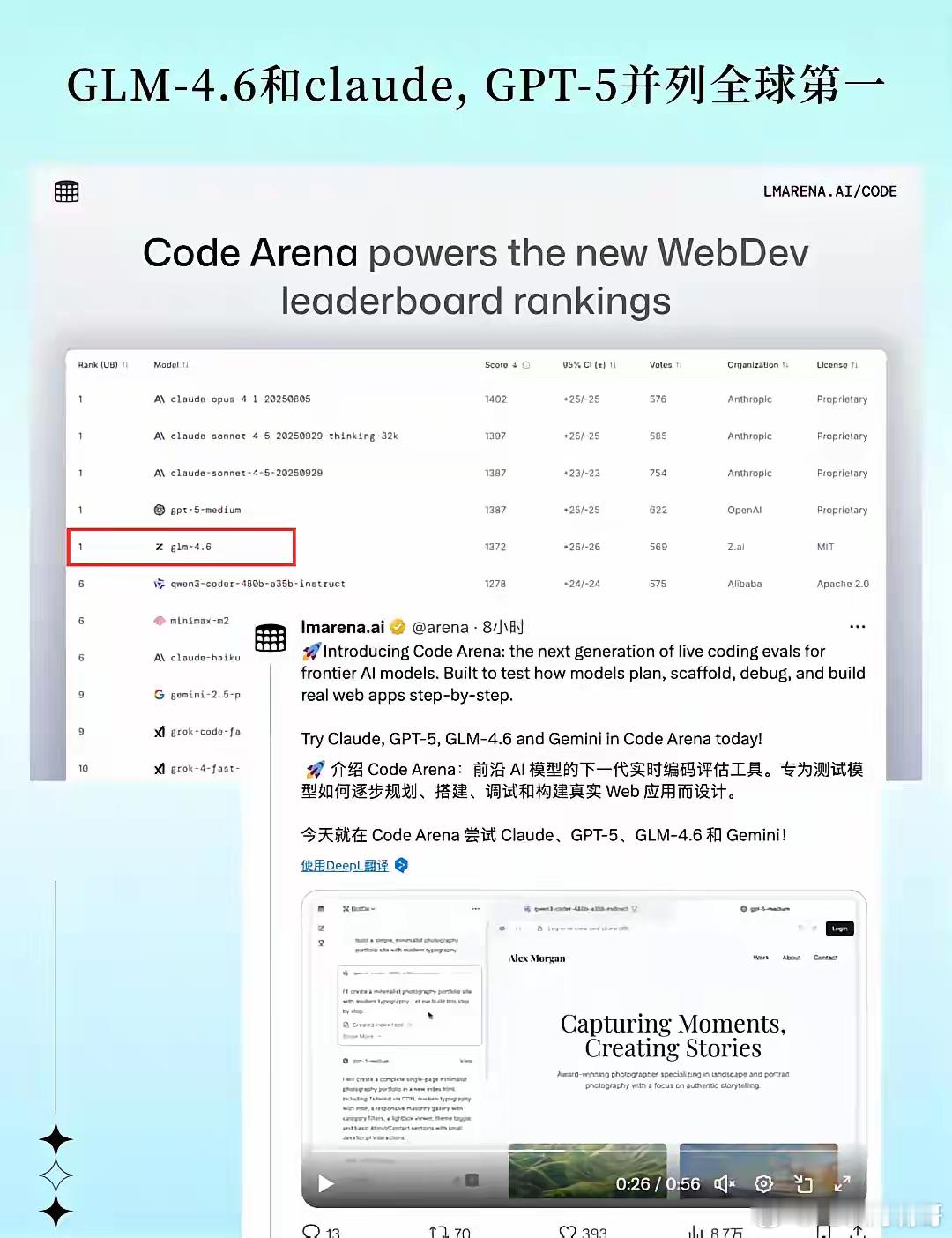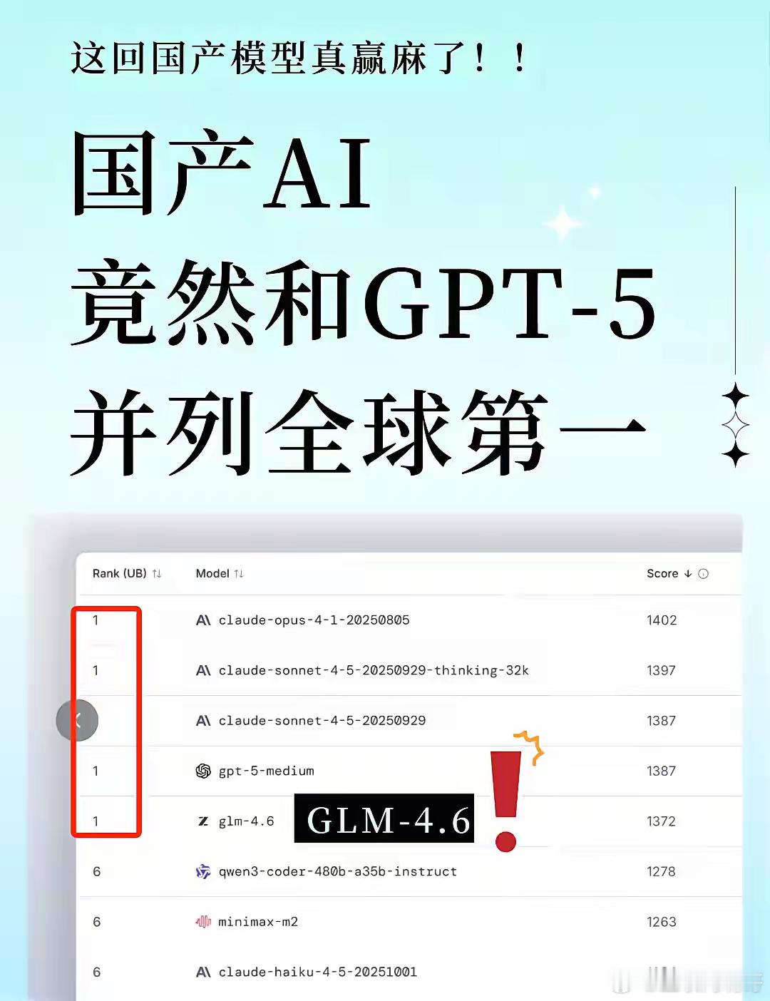 直接炸了!国产AI竟和GPT-5并列全球第一?今天LMSYS Arena这个新榜单谁看了不迷糊?本来以为Claude 4.5和GPT-5神仙打架,结果定睛一看,咱国产的GLM-4.6居然也在第一梯队??Z.ai 这波太低调了吧,这是憋了个大招?听说这次是因为code(代码)能力太猛,LMSYS Arena直接被迫“上新榜”这说明什么?说明在最难的编码赛道上,GLM-4.6 已经做到了和 GPT-5 难分高下的水平!能在这个全球最严苛的盲测榜单上看到中文模型登顶,说实话,有点燃🔥国产AI这次真的站起来了,而且是站在了最顶峰有人试过这个新版本了吗?评论区蹲一个反馈!