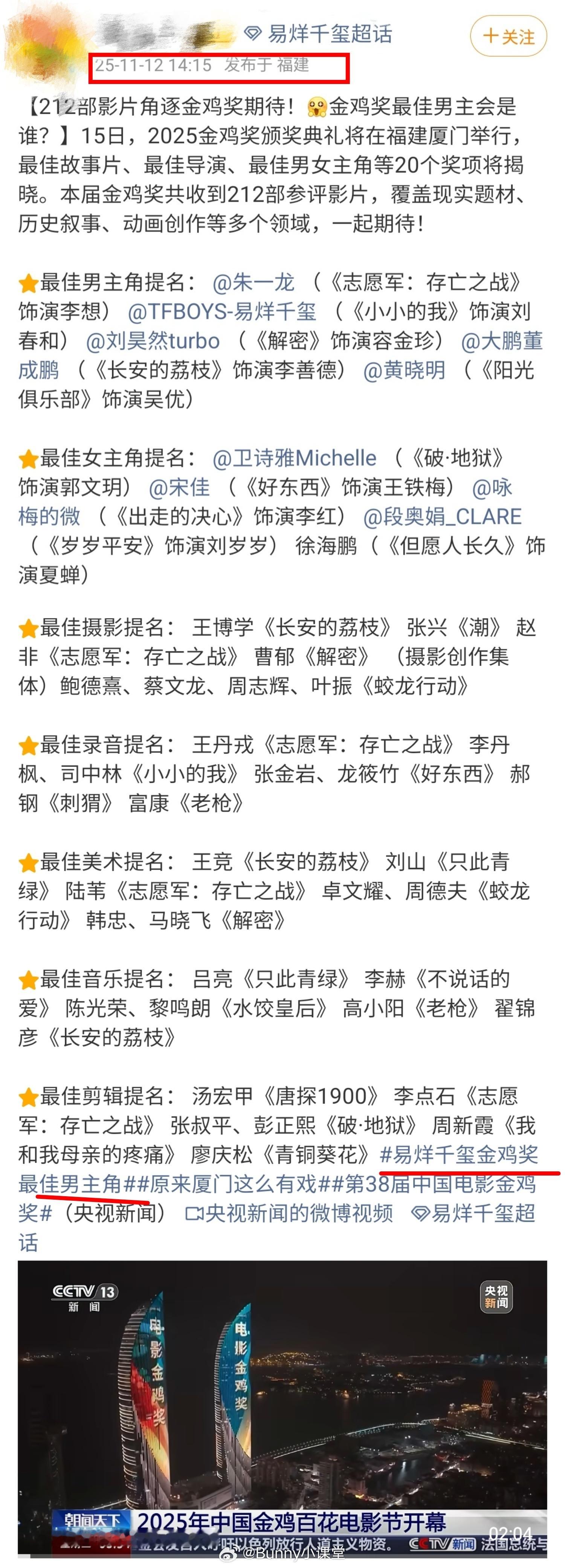 一些大号为了热度也是拼了,四字/朱一龙/刘昊然几个影帝候选人的ct都出来了,还没开奖就已经热闹成这样。。。