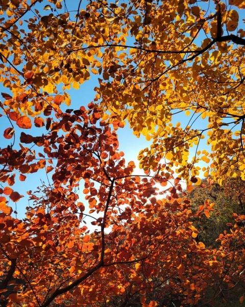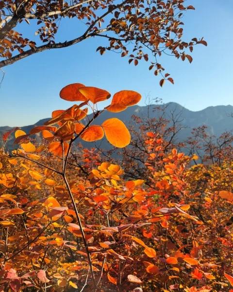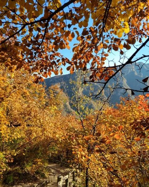 坡峰岭的红叶~不负美景不负晴天~ 晴天下的红叶太美!太美! 坡峰岭红叶攻略(2025) 最佳观赏期:10月中旬至11月初(11月2日已进入最佳观赏期,建议抓紧)。 交通:优先自驾,导航“坡峰岭景区”,停1/2号停车场后换乘免费摆渡车至入口;公交乘917路至周口店客运站转房32路。 路线: - 休闲线(2.5小时):南门→玫瑰亭→黄栌王→云湖(湖光山色+打卡框)。 - 登顶线(3-4小时):南门→醉石林→鹰嘴岩(俯瞰全景),返程建议走下山路。 贴士: - 早7点前出发避高峰,景区16:00停止入园。 - 穿防滑鞋,山顶风大需保暖。 - 景区内餐饮平价(如玉米10元/根),下山可尝农家菜(人均50-60元)。 - 非遗市集、山货大集同期举办,可体验乡土文化。 周边:云上石屋民宿(红叶房)、姥姥家老宅民宿可提前预订。
