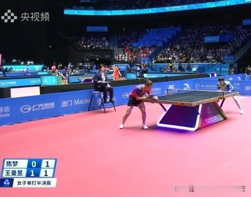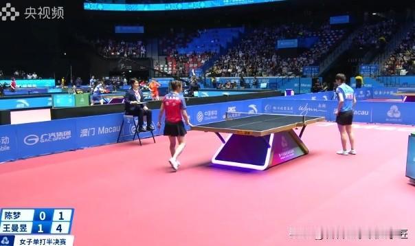 王曼昱对战陈梦首局11-4告胜! 没想到第一局陈梦一直王曼昱压着打,似乎没有办法破解王曼昱的打法。 第二局开局,陈梦更是连续三个吃球,王曼昱连得三分,虽然陈梦发力连连追分,但是经过分数的交替上升,最终王曼玉12-10赢下第二局。 这回就要看陈梦是否能像战胜蒯曼一样让二追四,上演一场赛场逆转。 高手对决比赛精彩,粉丝的加油呐喊声更是震撼全场,为自己喜欢的运动员加油! 作为王曼昱与孙颖莎的粉丝,我希望她们两双双晋级进入决赛。