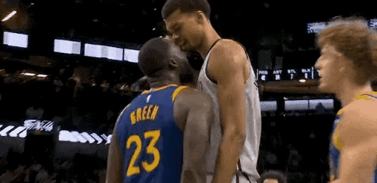 格林:年轻人不讲武德,不懂尊重老将? 文班亚马:你什么咖位?还尊重你? 格林:敢隔扣我?没看过我当年踢裆集锦吗? 文班亚马:踢裆?就你? 格林:下次请你保护你的老二,你今天激怒我了。 文班亚马:我能在你头上作业,你却想在我下面作业,你有脸吗? 格林:小子,有你后悔的一天。 文班亚马:年龄大了,都够不着我老二了,还怕你不成。