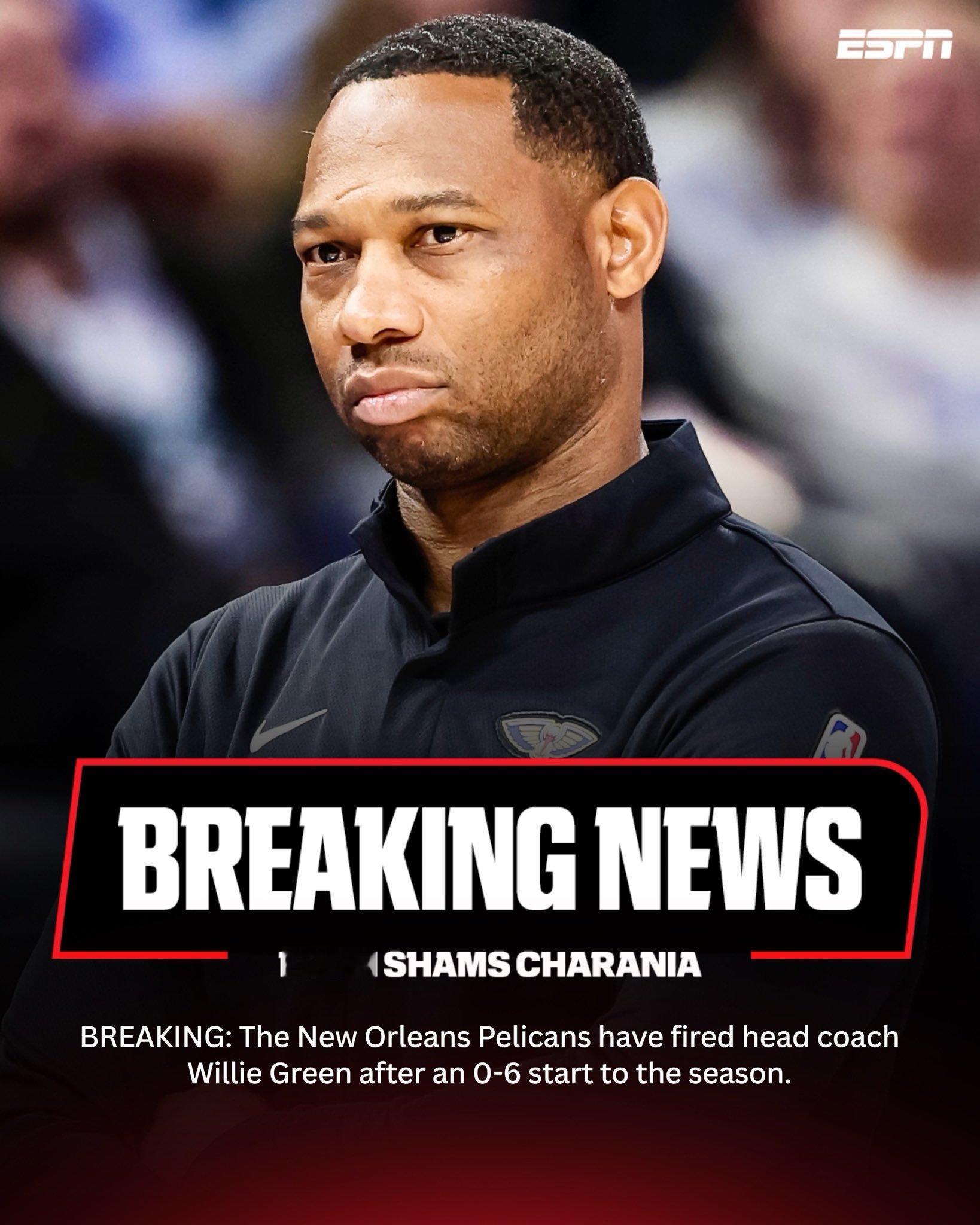 Shams:鹈鹕解雇主教练威利-格林,鹈鹕本赛季2胜10负,西部倒数第一。助理教练布雷格将担任临时主帅。