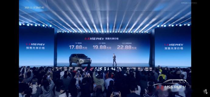 混动车纷纷拿手的特点之一,就是超长的综合续航,那一台插混车极限续航最长是多少?红旗给出的答案是:2327.343公里。红旗HS6 PHEV今天开启预售,预售价格17.88-22.88万元。简单盘一遍这台车的要点:外观就不用多讲了,依然是红旗一贯的家族式中式风格。满油满电极限续航2327.343公里,获得吉尼斯世界纪录认证,是插混SUV零补能行驶最远距离的车。当然续航高的主要原因就是能耗,这台车WLTC馈电油耗5.1L/100km,属于很优秀的水平。全系标配30英寸AR-HUD,纯电续航 248公里,4C超快充,以及16扬丹拿音响。这款车算是25万级别,但预售价最终只定在20万上下,用来家用或者做个奶爸车还挺不错的。