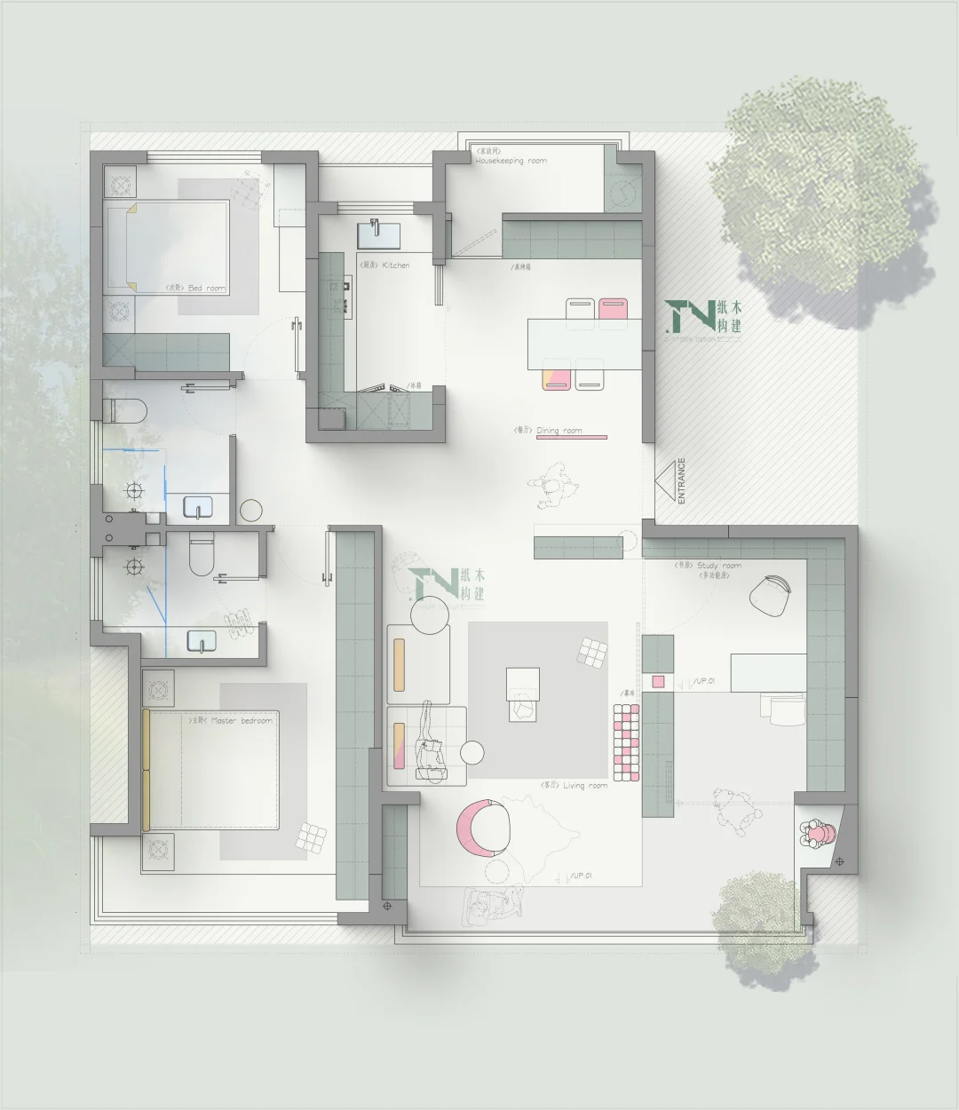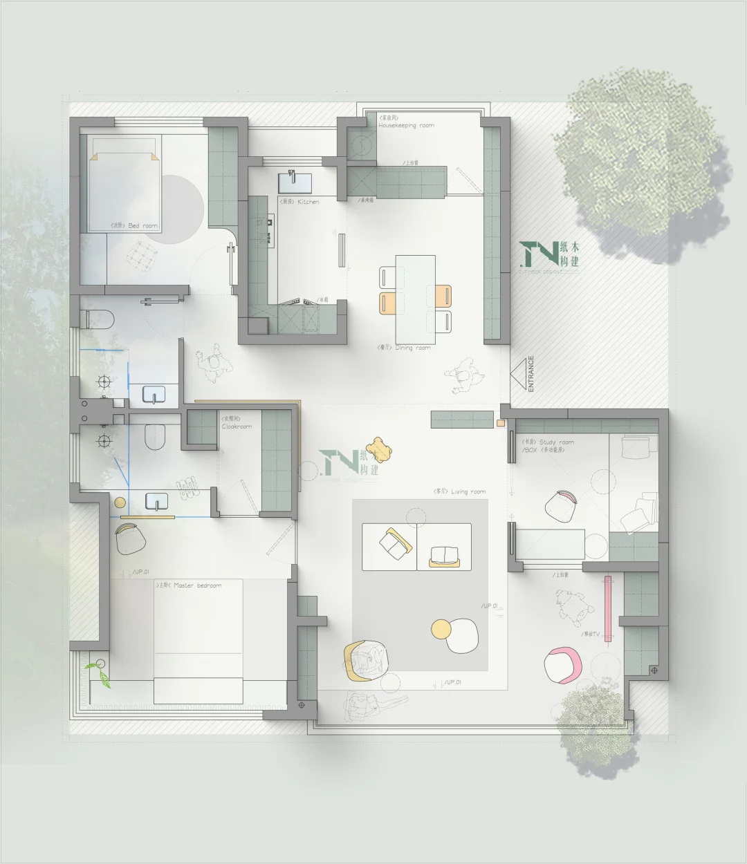四叶草户型01/中段入户户型,一户三稿
