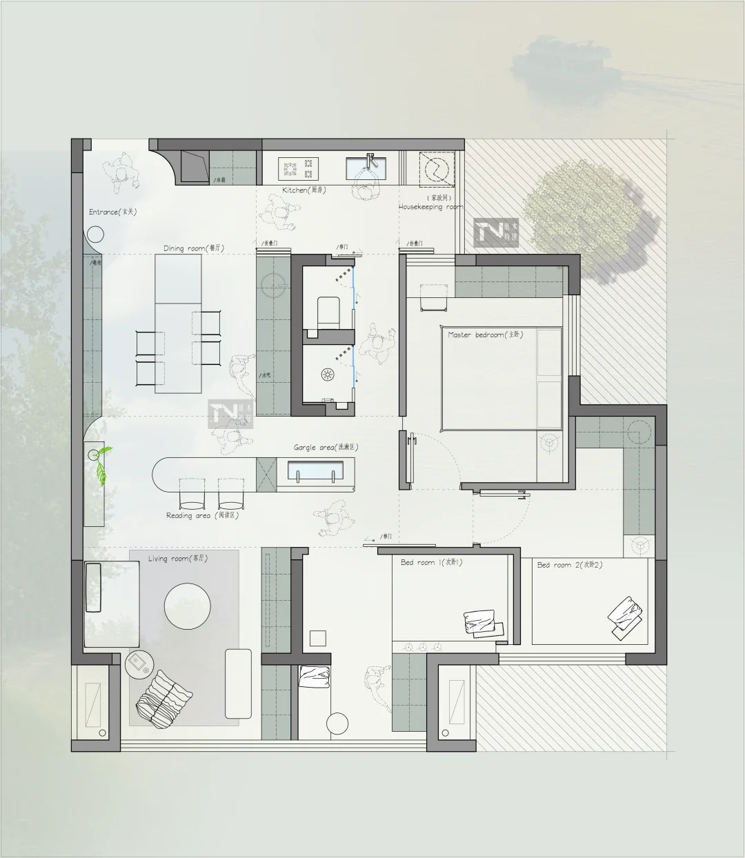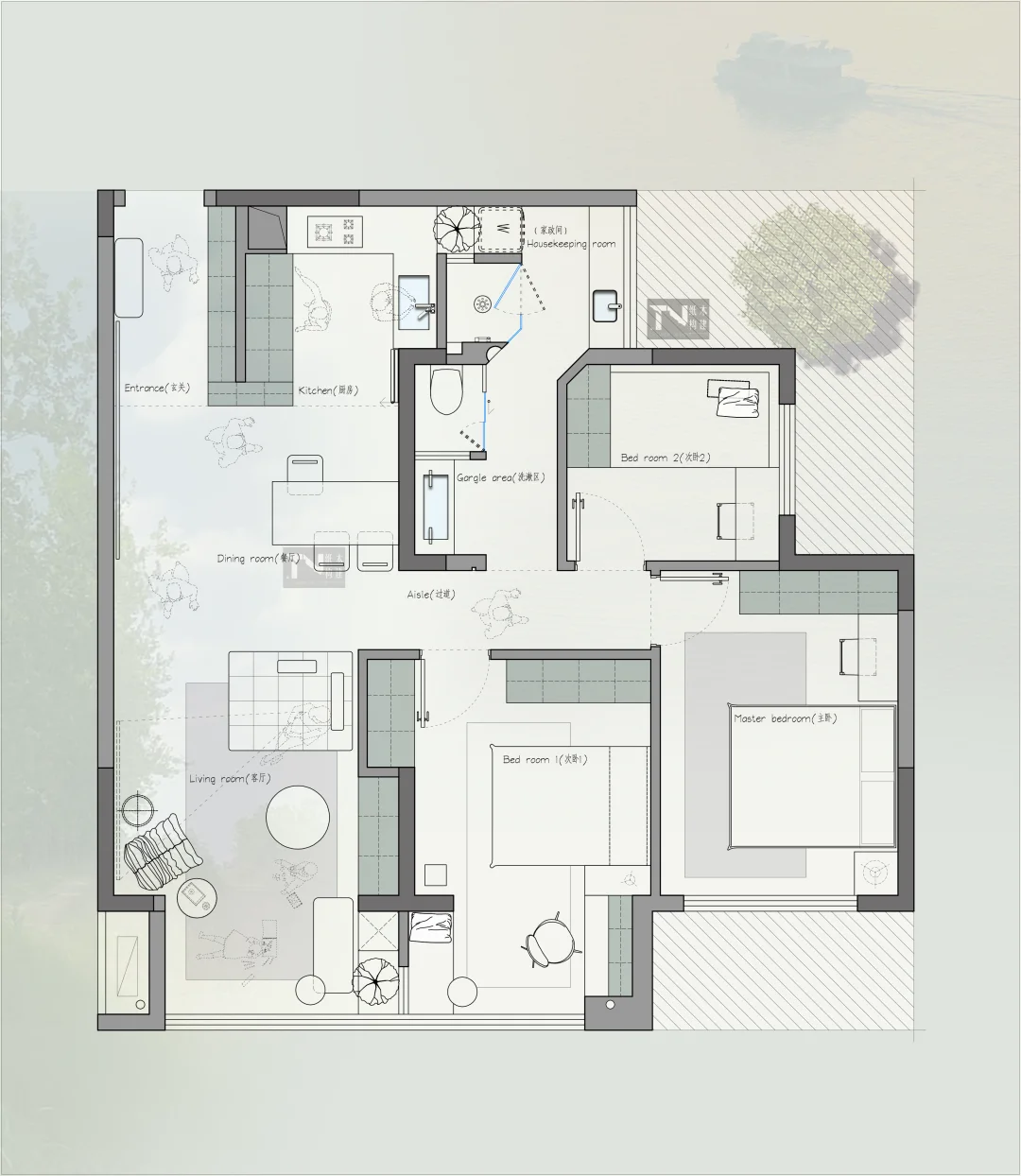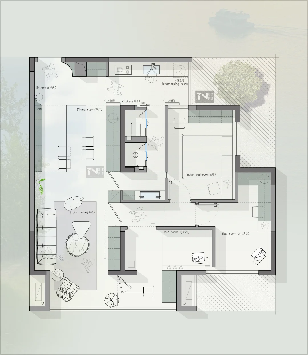神仙户型,三口人选这户型!①整体格局:本三居室户型方正紧凑,动静分区明确。客