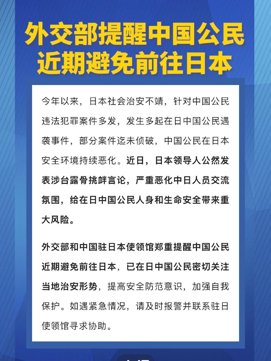 中方愤怒正在升级,日本自卫队配合高市早苗亮刀。 日本国民批高市早苗不适合担任首相,外交部郑重提醒中国公民近期避免前往日本。 高市早苗这位日本政客,最近频频出现在新闻热搜上,不过她上热搜的原因并不是什么政绩,而是她在公开场合表达了对中国的不友好立场。 而且还配合日本自卫队进行了一系列所谓“防卫演习”的战略宣传。日本媒体对这件事炒得火热,但咱们中国的反应也不含糊。 外交部的表态非常清晰,强调绝不接受任何形式的挑衅。而且这事儿已经不只是嘴上说说了,从中国官方的语气和行动来看,这次是真的动怒了。 讲真,日本自卫队这几年动作不断,借着“安全保障”名义搞各种演习,频率高得让人怀疑是不是在为某种事态做准备。 而这次高市早苗的高调配合,更是让人觉得他们不是心血来潮,而是有计划、有步骤地在推进某种战略意图。高市本身就是右翼代表。 说话一向强硬,这次她不仅没收敛,反而在局势紧张的时候火上浇油,甚至在公开场合表态要对中国加强“战略防范”,这个话说得就很有问题了。 最有意思的是,日本国内对高市的态度也开始变得微妙。不少日本媒体和网友已经公开质疑她是不是太过激进了,有人甚至直言她根本不适合当首相。 这种舆论变化其实挺值得关注的,因为它说明并不是所有日本人都认同对中国搞对抗,反而有不少人担心这样下去会把日本带进一个不必要的对立状态。 外交部那边的提醒,其实就像是一个信号弹,告诉我们这不只是一次普通的“提醒注意安全”,而是对日本当前政治和军事动向的一种正式回应。 而且从最近一系列国际局势来看,像是中东的战火不断、俄乌冲突还在持续,美西方国家在亚太地区也越来越频繁地搞小动作,中日之间这种原本就敏感的关系更容易被引爆。 回头看看历史,日本一有内政不稳定的时候,就爱拿邻国说事。这次高市早苗在党内地位不稳,又想刷存在感,就选择了“对华强硬”这条老路,这种操作在日本政坛其实是一种传统技法。 问题是,这种“刷存在”的方式对中日关系没有任何正面价值,反而可能让事情越来越糟糕。从中国的角度来看,维护国家安全和区域稳定是底线,不容触碰。 日本自卫队如果继续玩火,那中方的反制措施可能会更加强硬,不管是经济层面、外交层面还是舆论战线。而且这种局势一旦升级,对日本来说也不是好事。 毕竟中日之间的经贸往来体量巨大,日本很多产业都离不开中国市场,一旦中方采取对等措施,受伤的不会只有高市早苗一个人。 其实说到底,普通民众并不希望看到局势恶化,不管是中国人还是日本人,大多数人都希望和平稳定能持续下去。高市早苗的冒进言论和日本自卫队的配合演出,显然是在挑战这一点。 而中国现在所做的,不是情绪化的反应,而是对国际局势精准的研判和理性的应对。眼下的国际局势已经够复杂了。 各国都在想办法稳住经济、缓和矛盾,日本却反其道而行之,搞挑衅、搞对抗,不仅对区域安全没有帮助,反而让整个亚太的紧张情绪更上一层楼。 从这个角度看,外交部的提醒不仅是针对日本的态度,也是对中国公民安全负责任的表现。最后得说一句,咱们中国人出国旅游也好、工作也罢,安全永远是第一位的。 外交部发出这样的提醒,不是小题大做,而是基于事实的判断。如果连这一点都不当回事,那才真的是对自己不负责任。 至于高市早苗和日本自卫队的配合演出,咱们就拭目以待,看看他们到底能把这出戏唱到哪一步。