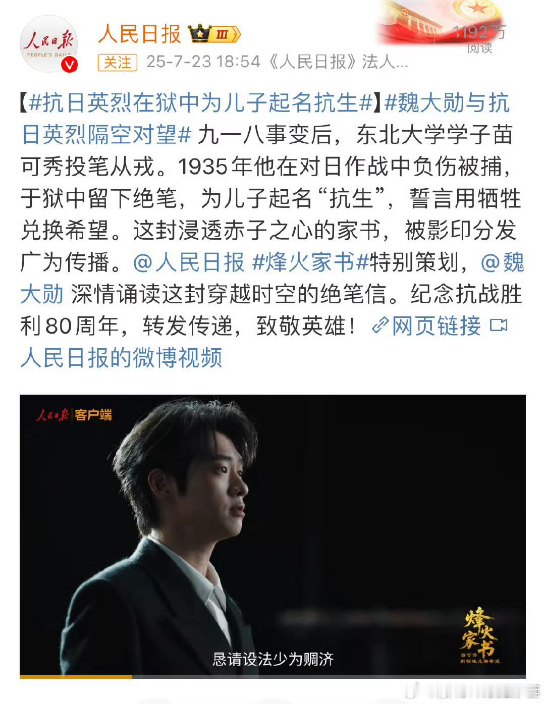 魏大勋 央视➕各种活动~今年连续十一次邀请他参加节目!今年还献唱了烈士纪念日主题曲, 朗诵抗日英烈绝笔信,正能量文艺工作者