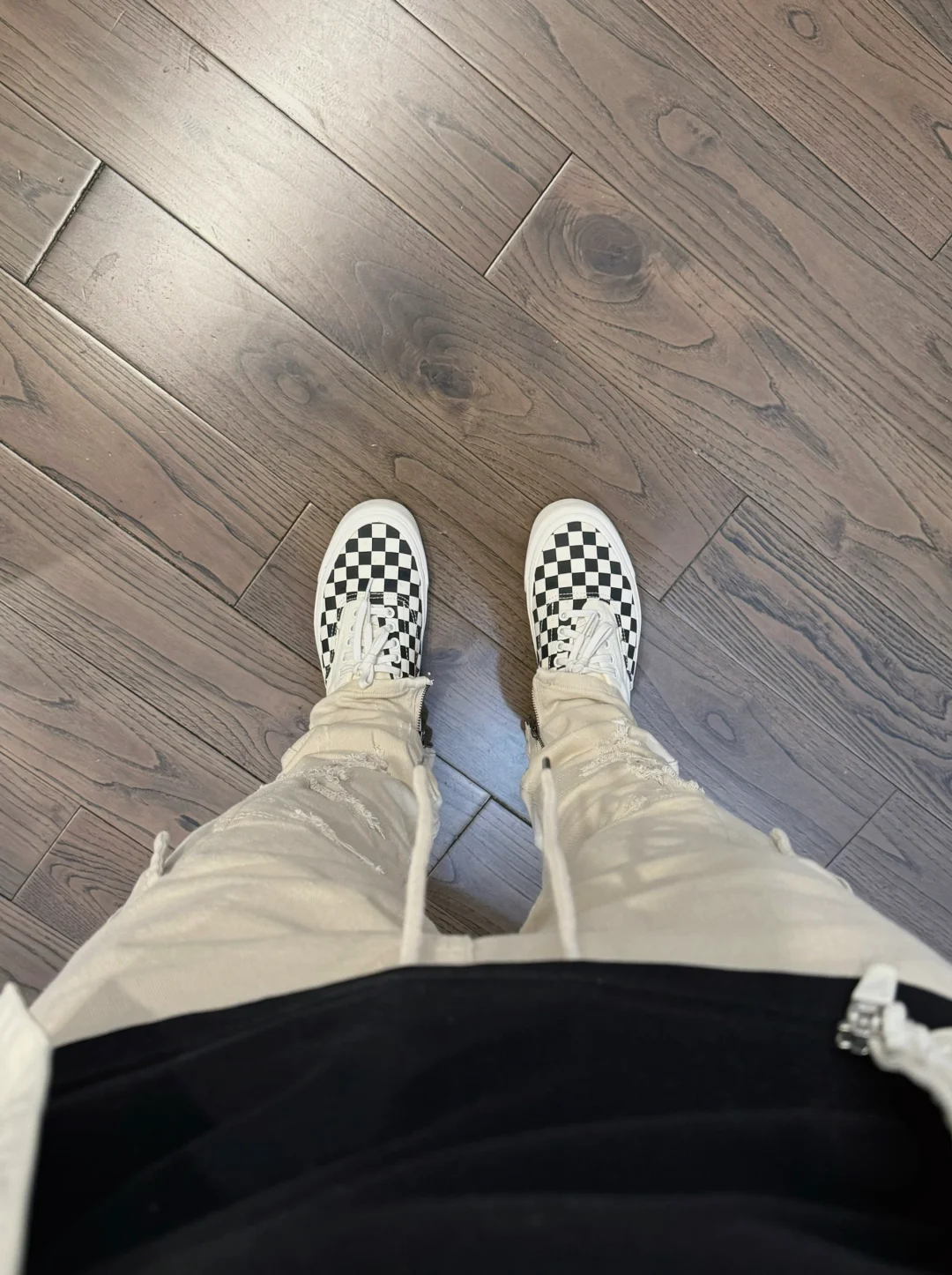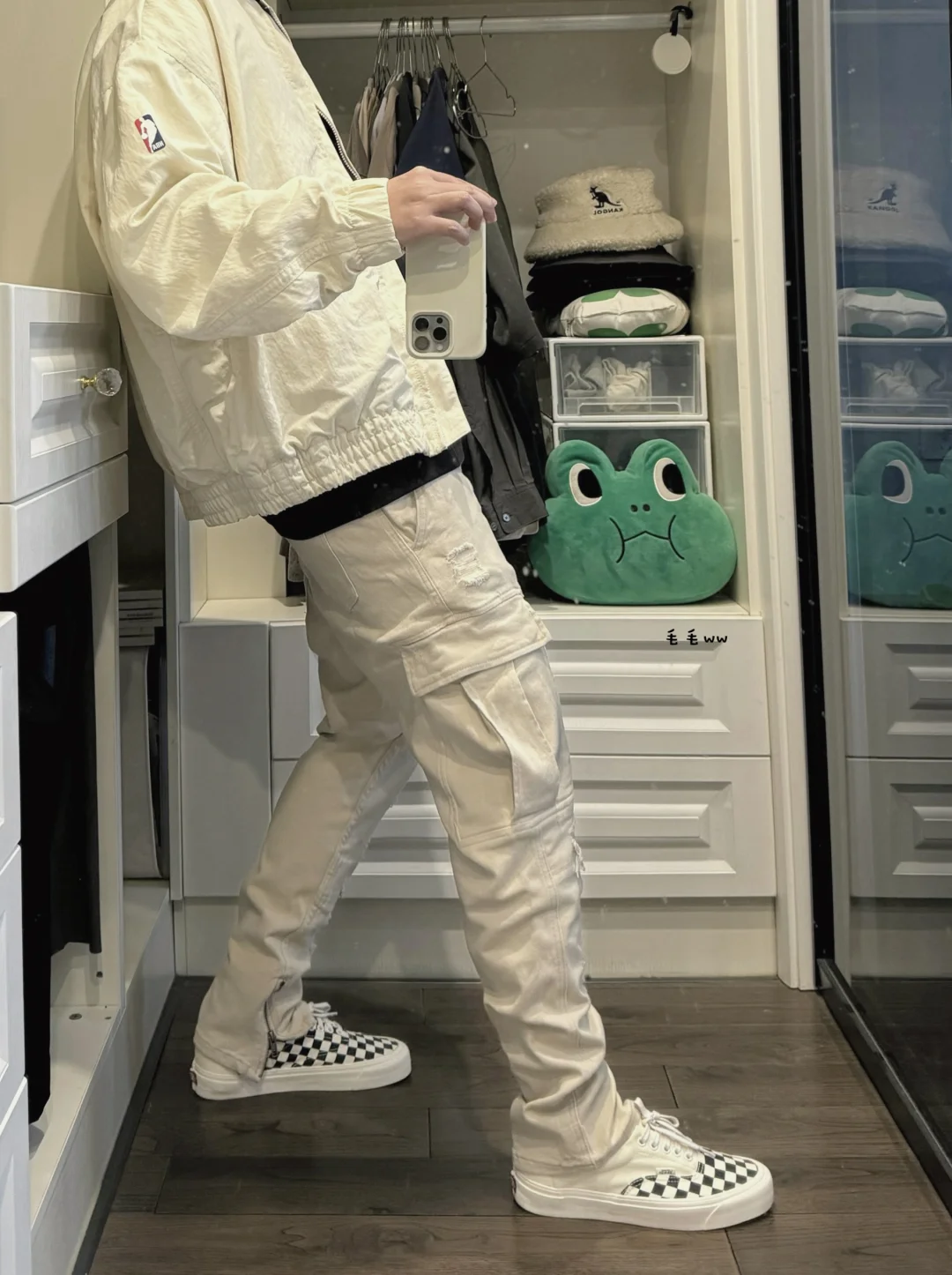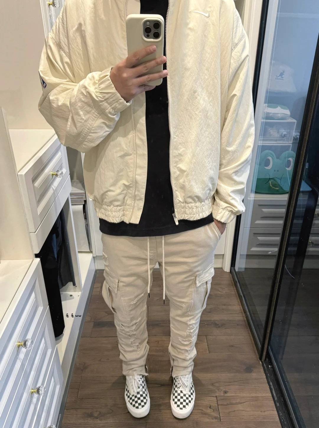 -除了常穿的Old Skool&Knu Skool,Era也是容易搭配并且显瘦的鞋款之一 . -整套选择了复古的米色系,内搭黑色与棋盘格呼应下,窄版工装显瘦必备 . —————— . 👔Nike Fear of God // L . 👖XMXX Supply // 30 . 👟VANS era // 41 . —————— . ✏️本人178cm75kg 球鞋尺码265mm(正常EU42) . 💭以上均为我个人观点,不喜勿喷,欢迎讨论。