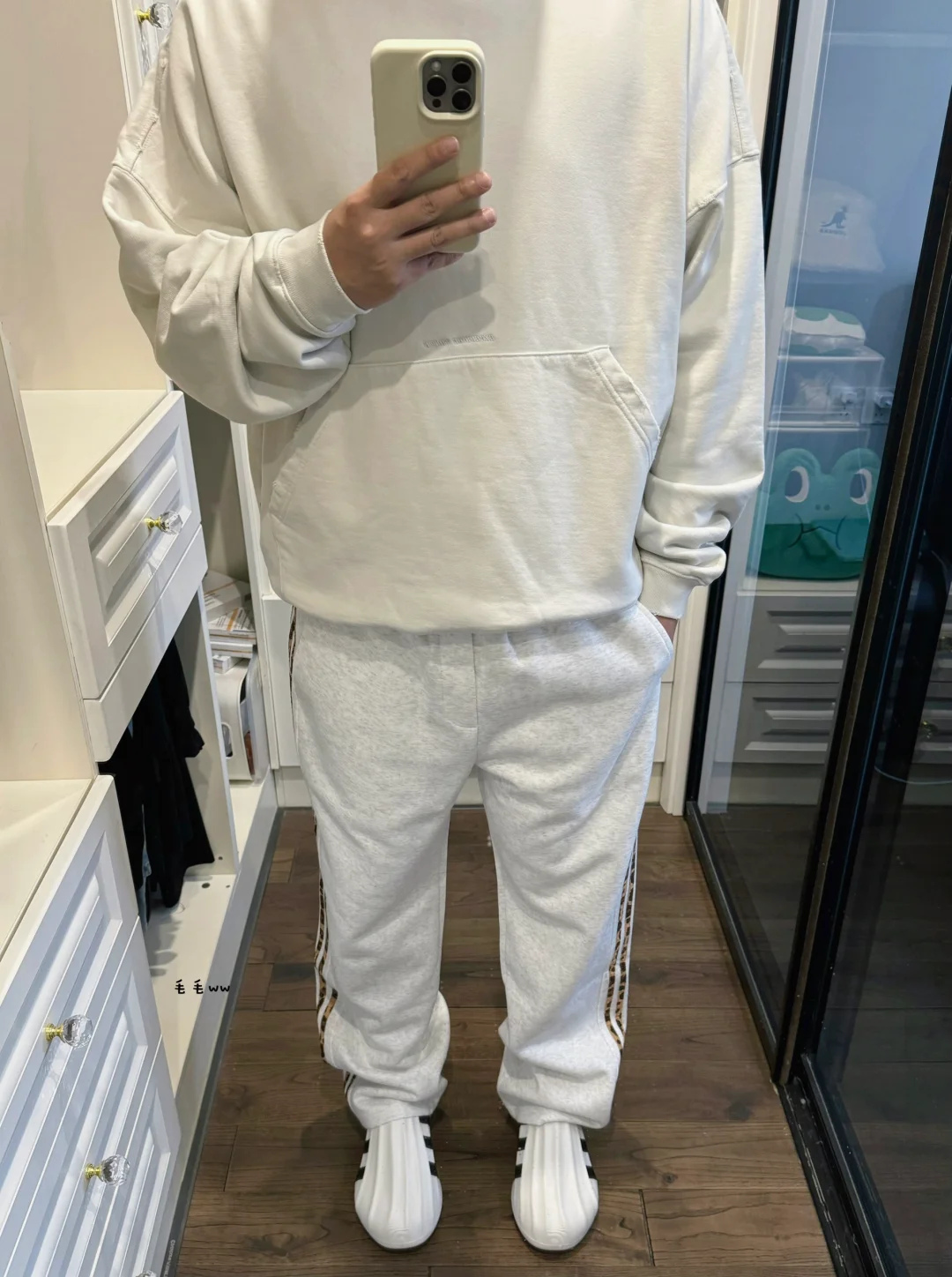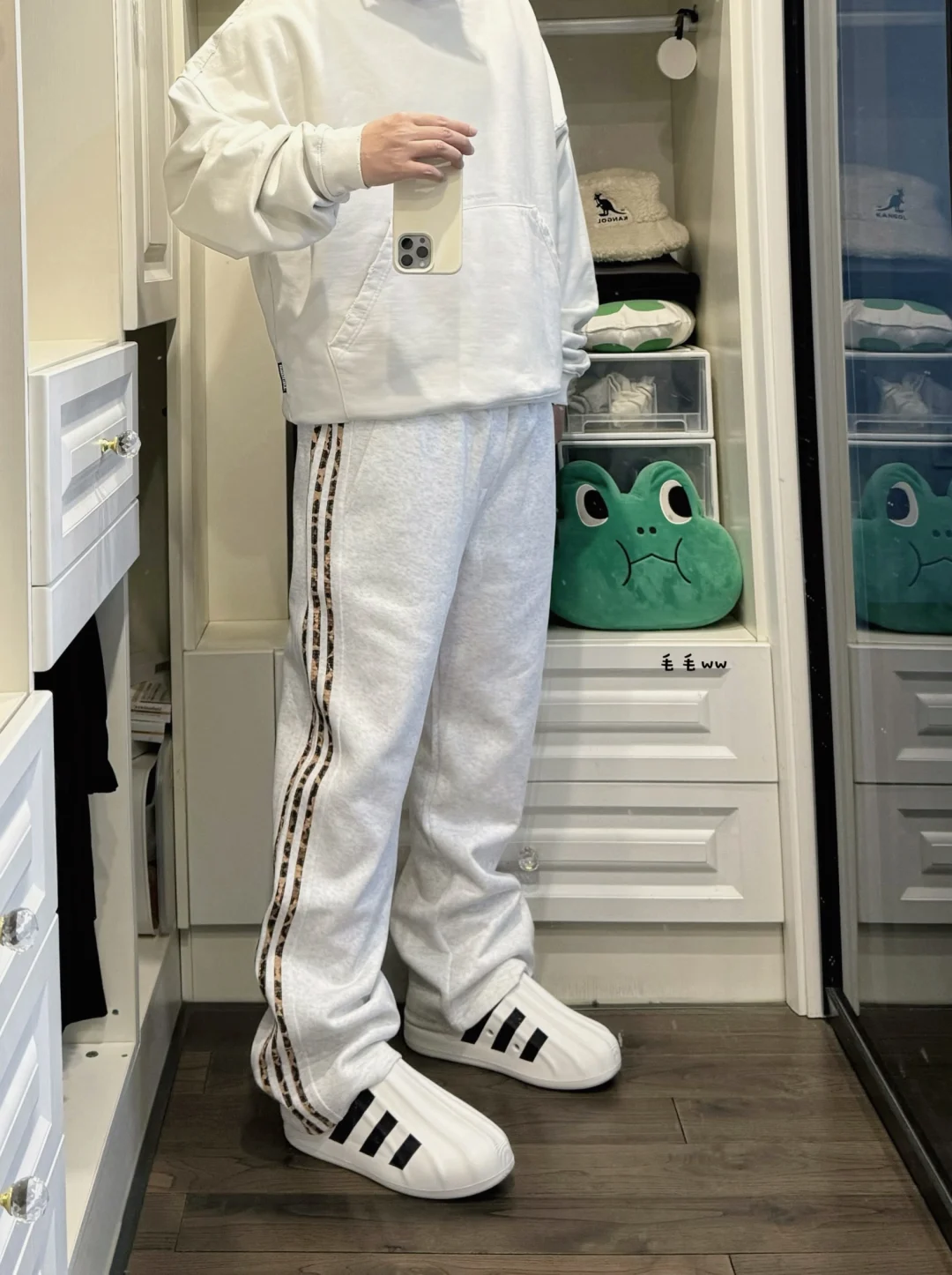 -迪子好起来了,侧条纹的卫裤搭配更顺眼些,之前穿过迷彩,本期的豹纹也算小细节 . -清爽白色系穿搭,整套实物略泛灰色,附带一丢丢做旧感,配合卫衣的小破坏刚刚好 . —————— . 👔Expensive Taste // M . 👖COLDSTONE // XXL . 👟Adidas adiFOM / Superstar // 43 . —————— . ✏️本人178cm75kg 球鞋尺码265mm(正常EU42) . 💭以上均为我个人观点,不喜勿喷,欢迎讨论